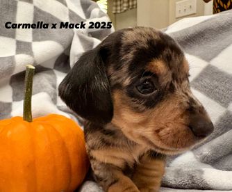 Mack is a gentle long haired silver dapple dachshund. He is CKC registered and we have his mother, Lady and father, Braht Wursst. Mack has a laid back personality and loves to travel.