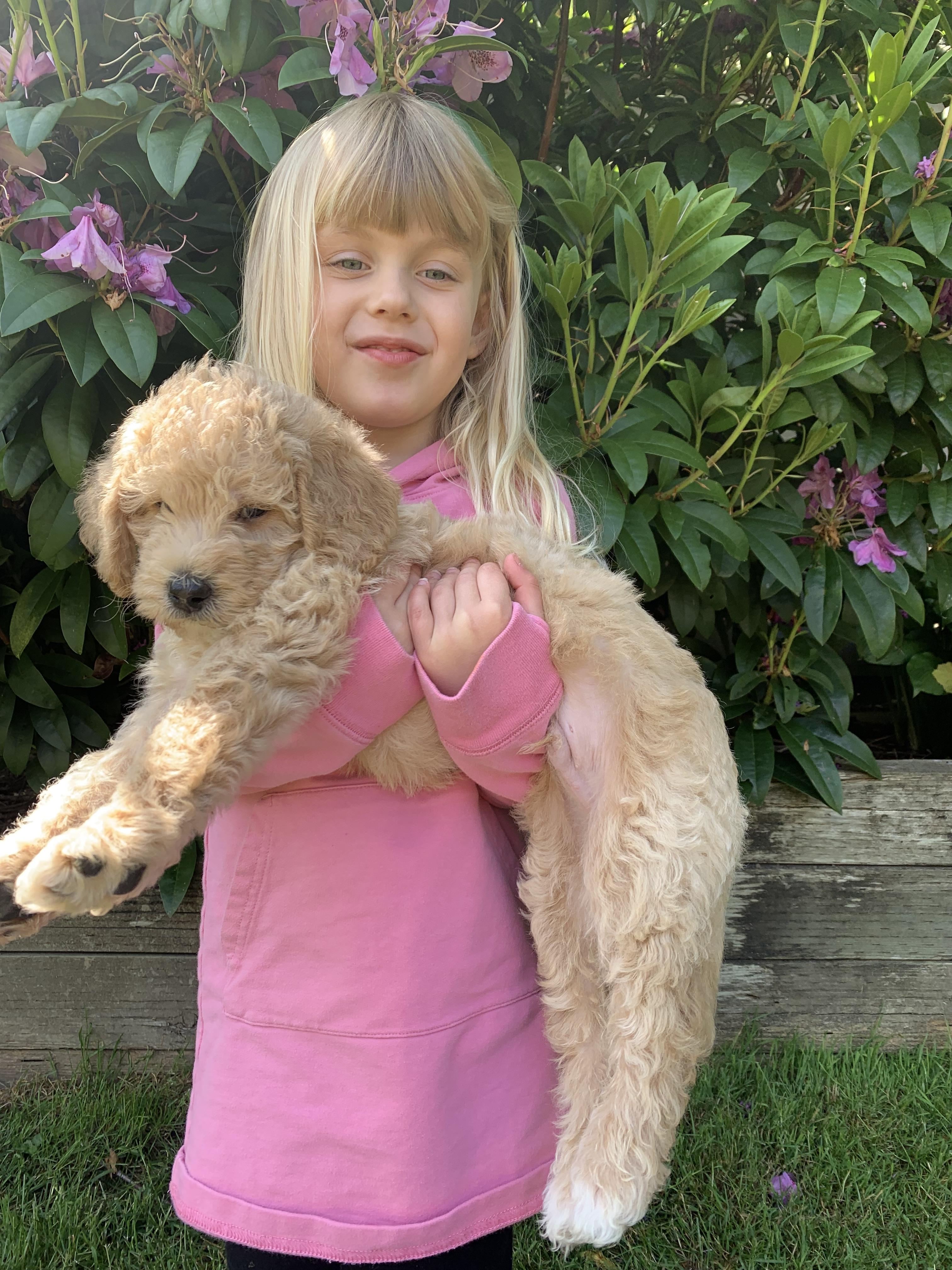 I'm Lisa/Rachel L., the breeder behind Riverside Doodles - Seattle (A+ genetics) located in Kent, WA. These puppies have A+ genetics with champion bloodlines. Trained puppies are potty & crate trained, sleep thru the night & know all of their basic commands. They come when called and are obedient! They come with a snall handbook so you can keep up with their training words and commands.