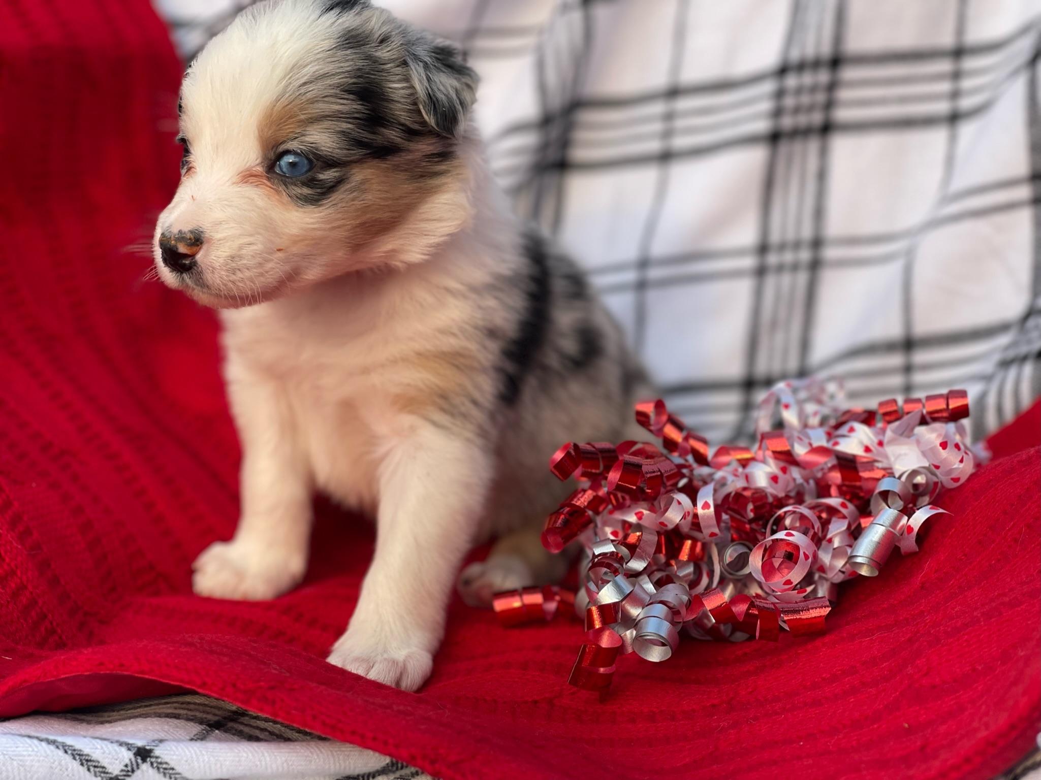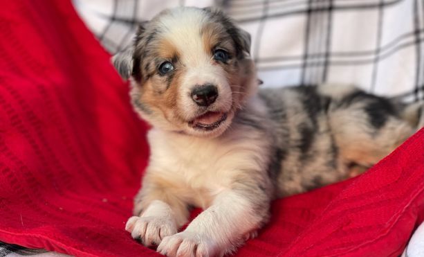Our puppies include tri-color and blue merle. Colors will vary depending on the parent dogs.