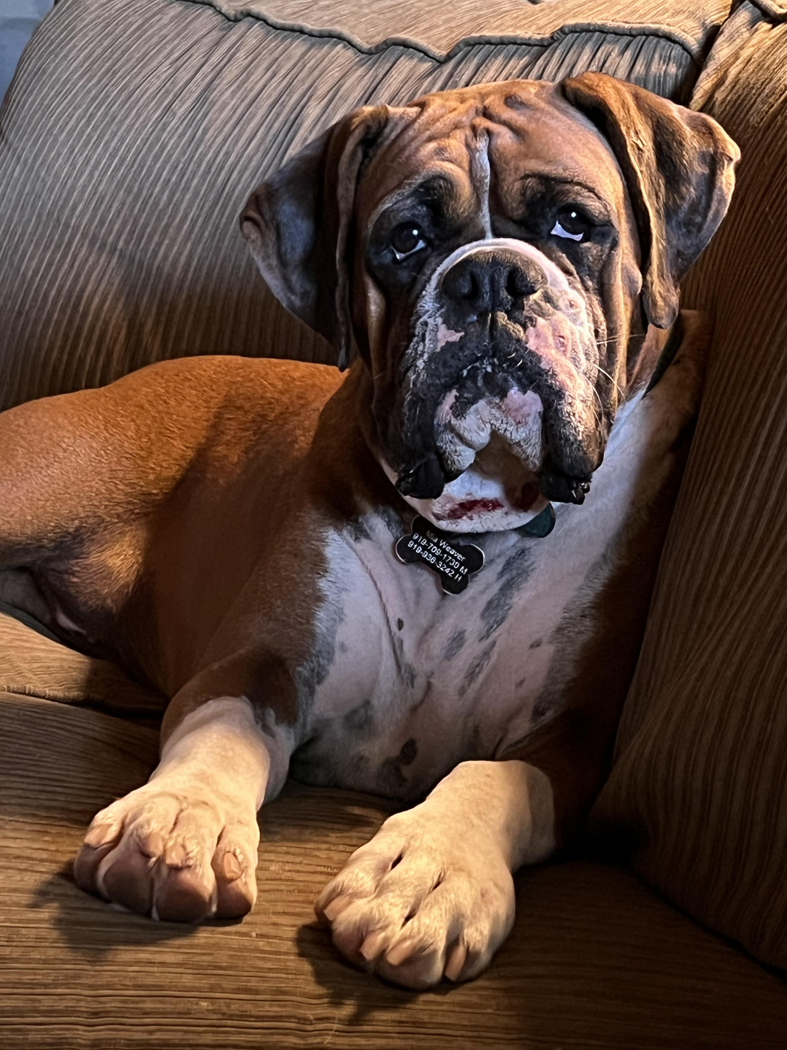 Rose is a female Boxer almost 4 years old. Carefully selected as a great representative of her breed, Mia & Donald decided to make her part of their program. Mia & Donald has passed Good Dog’s screening process, which involved a review of their breeding practices, environment, and the mental and physical health of their dogs.