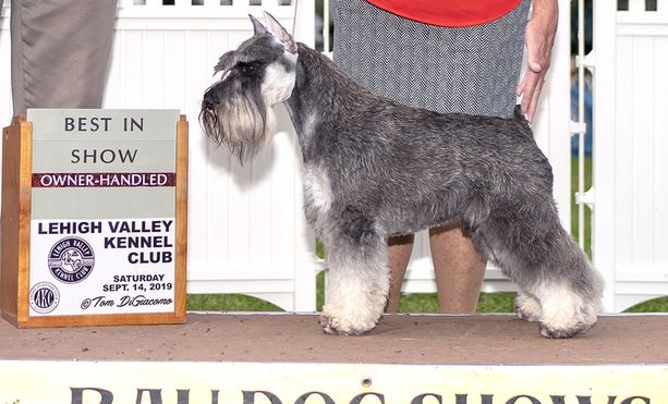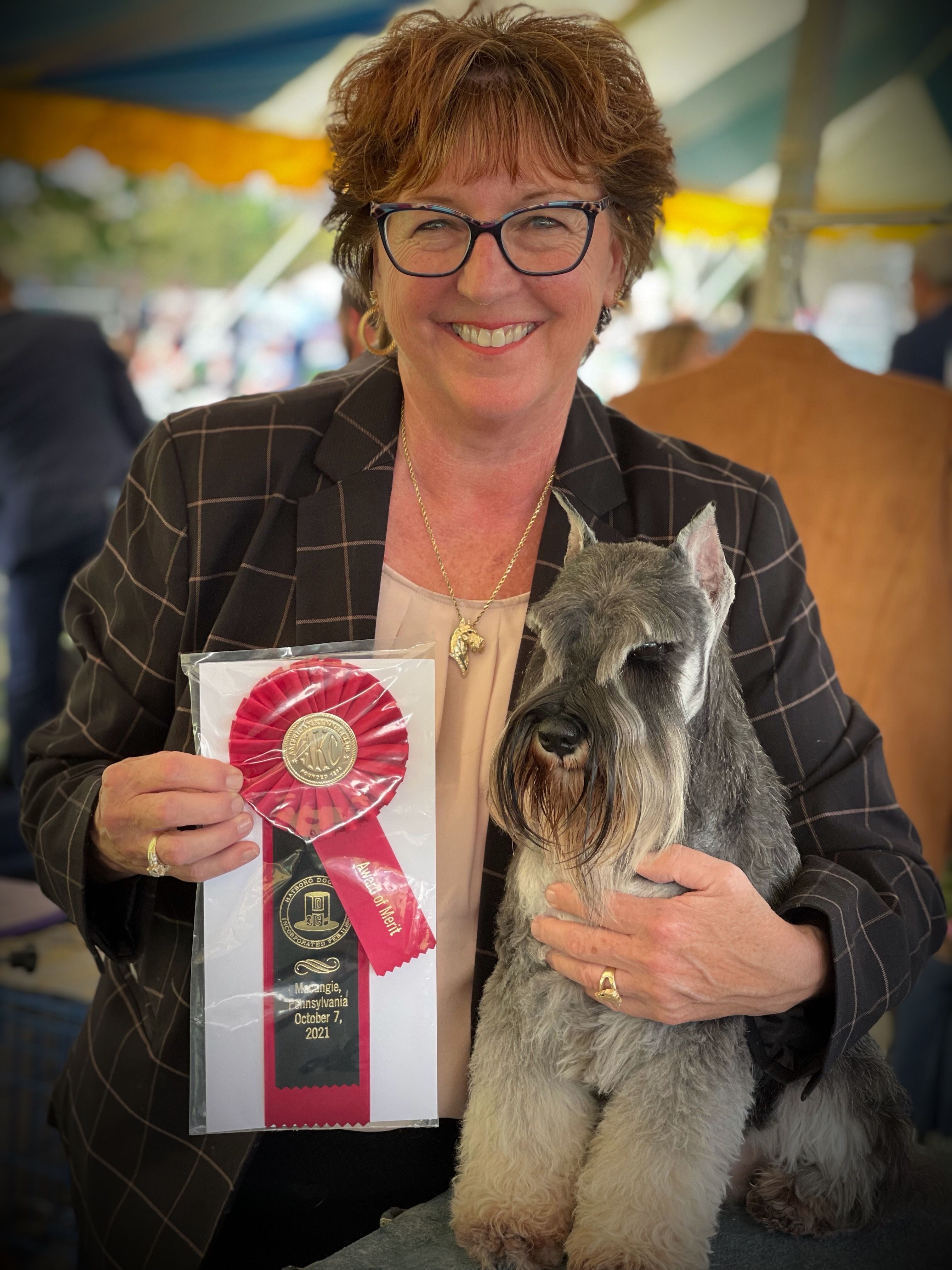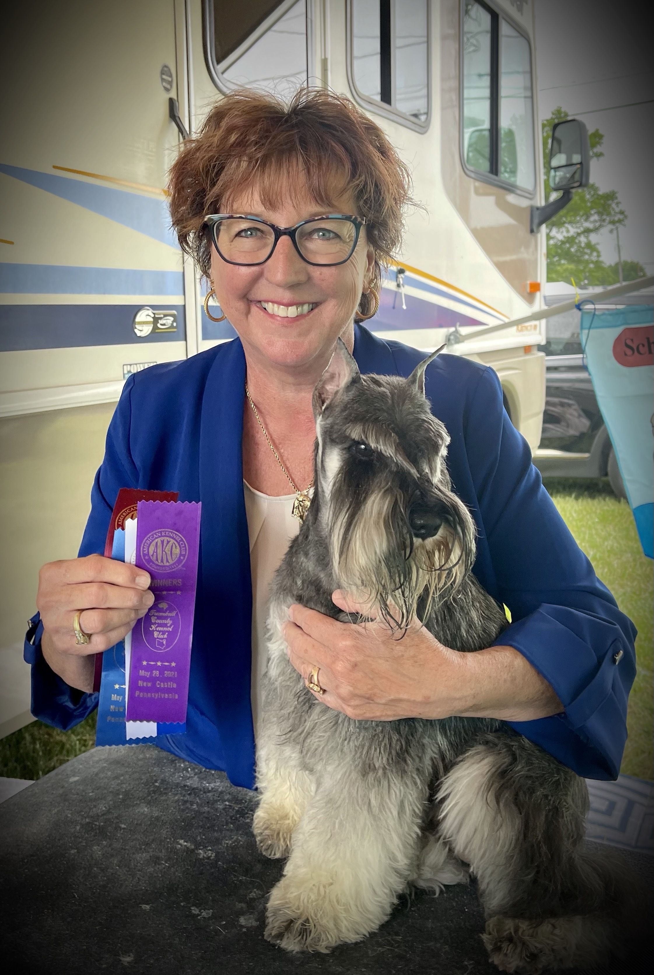 I'm Vicki K., the breeder behind Riversong Miniature Schnauzers located in Endicott, NY. As a member and officer of the American Miniature Schnauzer Club, it is vitally important to breed to our standard to perpetuate the breed we love! My puppies are hand-raised, socialized, and are offered early stimulation to ensure they are well adjusted. My puppies are bred from health-tested AKC Champion parents.