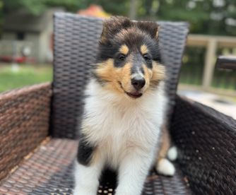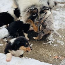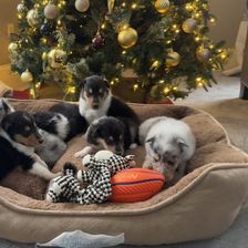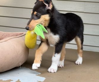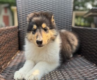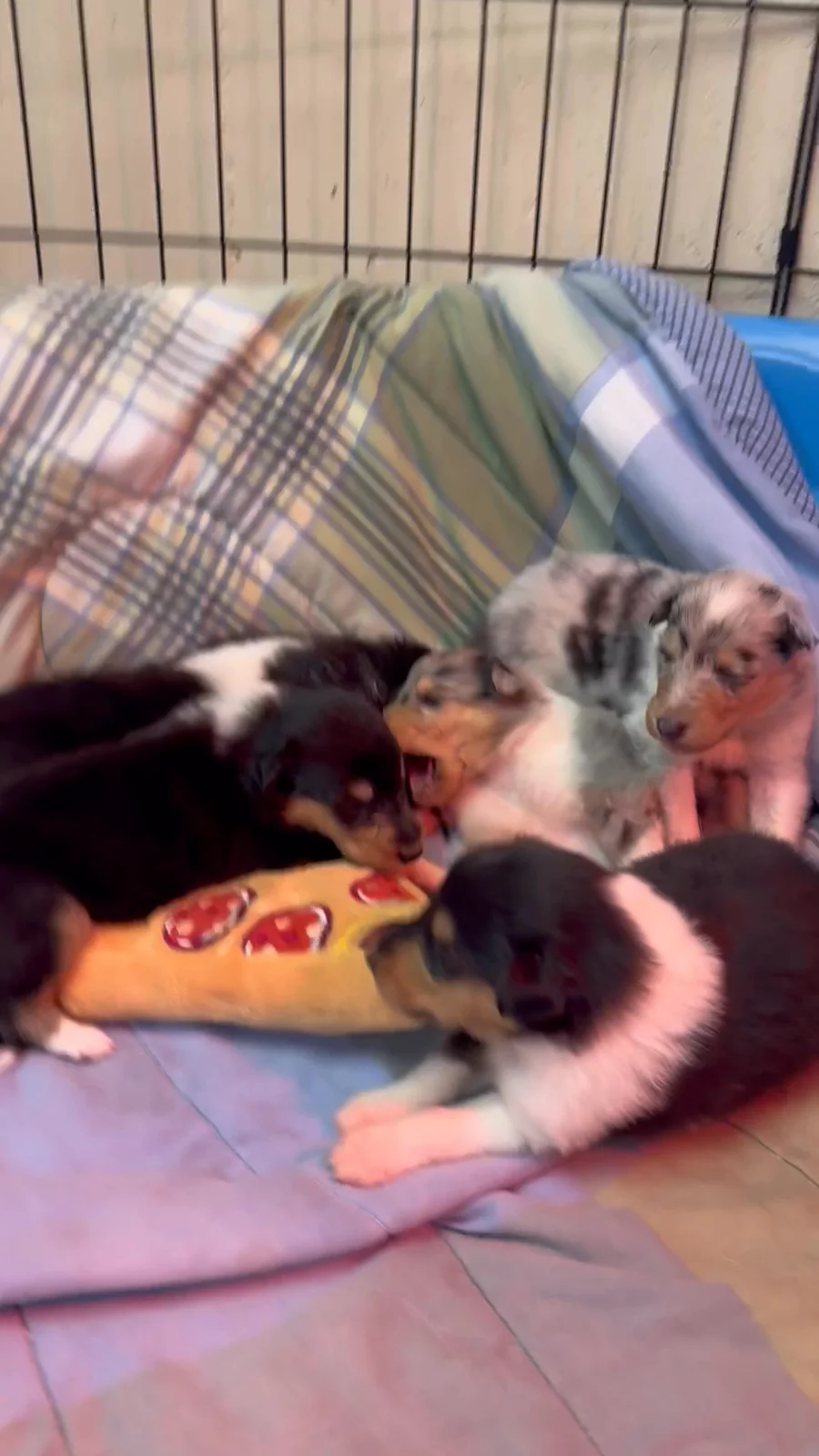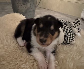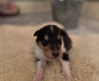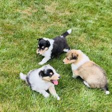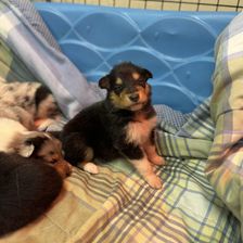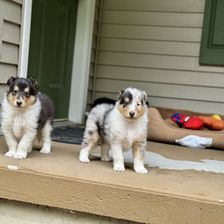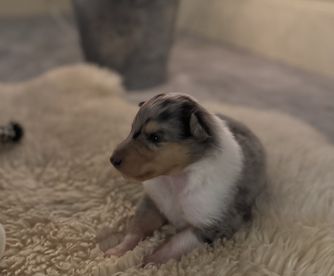 Our puppies include sable merle and white, sable and white, blue merle and white, and black white and tan. Colors will vary depending on the parent dogs.