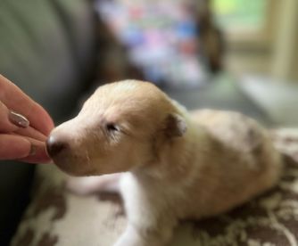 Puppies are 3 weeks old now. They are starting to walk. They can see and respond to my voice.