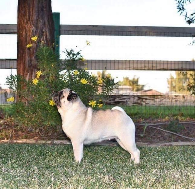 Jasmine is a female Pug. Carefully selected as a great representative of her breed, Terri decided to make her part of their program. Terri has passed Good Dog’s screening process, which involved a review of their breeding practices, environment, and the mental and physical health of their dogs.