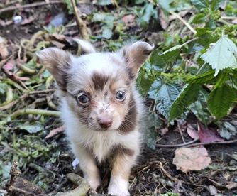 Our Border Collie puppies have rough coats. Chihuahua puppies include smooth and long coat varieties. Coat types may vary depending on the parent dogs.