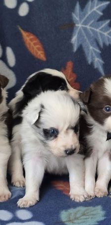Our Border Collie puppies include black and white, blue merle, red merle, black, gold, red, sable, sable merle, white and red, white ticked, and white and gold. Chihuahua puppies include merle, black, chocolate, black sabled fawn, blue, fawn brindled black, black and tan, black and white, chocolate and white, chocolate and tan, blue and white, blue merle, and blue and tan. Colors will vary depending on the parent dogs.