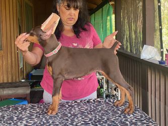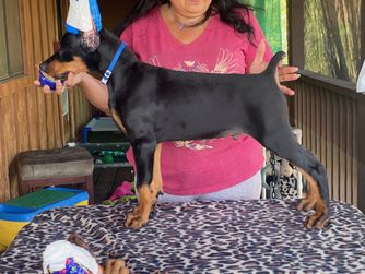 I'm Marla R., the breeder behind Riviera Dobermans located in Santa Clarita, CA. I work hard to breed healthy, happy puppies, and I take great pride in my breeding program. I am purposeful in everything that I do regarding my dogs, which includes careful selection of breeding dogs and extensive health testing. My goal is to produce healthy dogs with great temperaments that are exemplary representations of the breed.