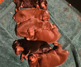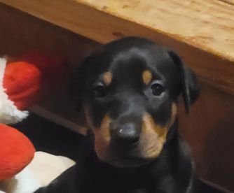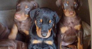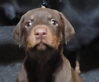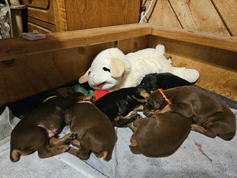 Our puppies include black and rust and red and rust. Colors will vary depending on the parent dogs.