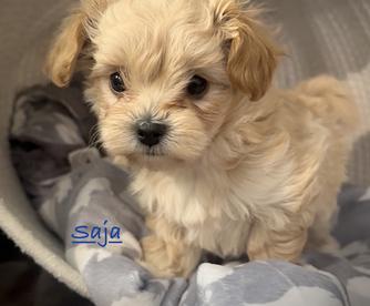 Our Maltipoo puppies include apricot and white. Poodle puppies include apricot and red. Havapoo puppies include black and tan, black, and red. Colors will vary depending on the parent dogs.