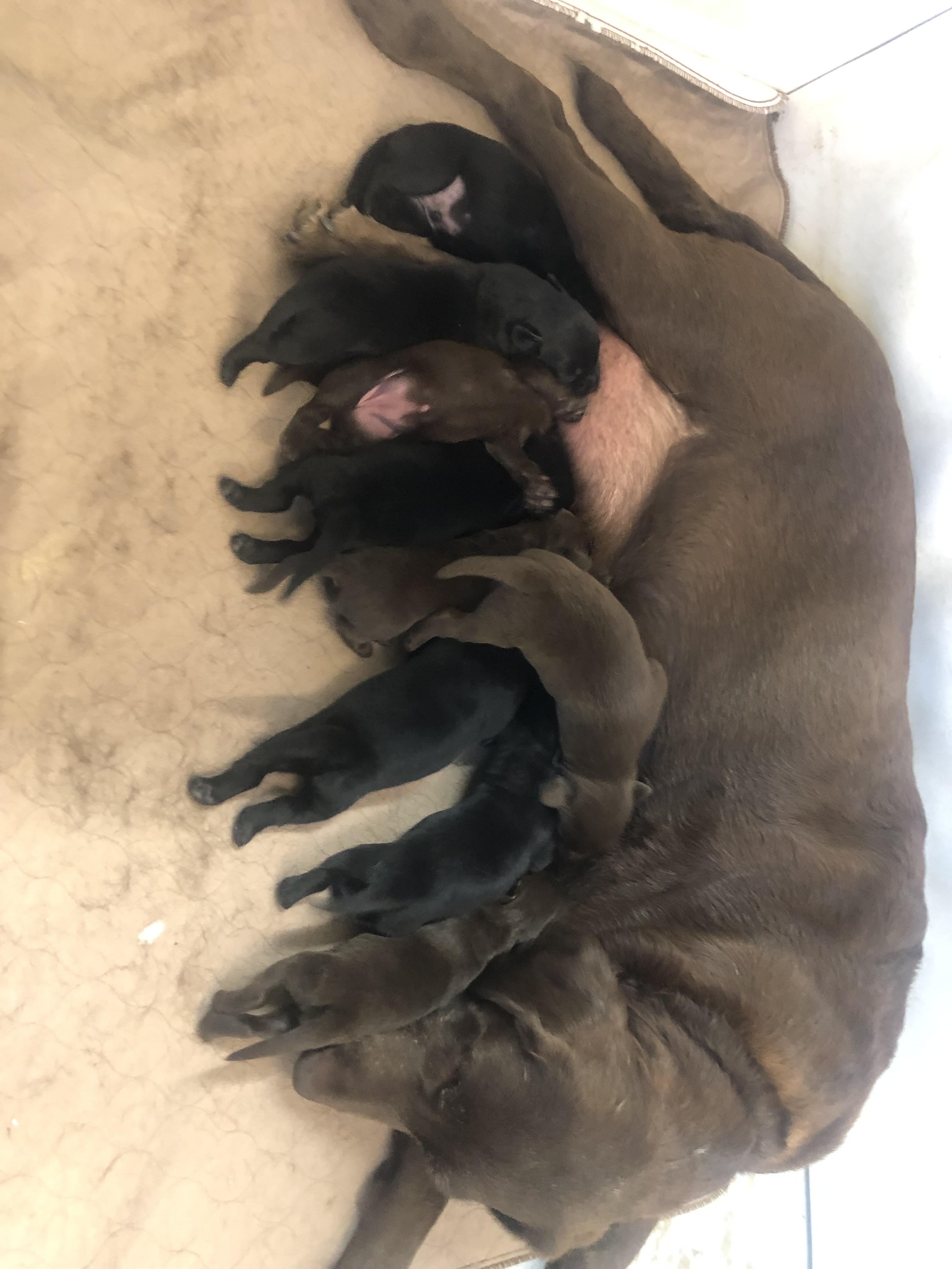 Labrador Retriever puppies include black, chocolate, and yellow. Colors will vary depending on the parent dogs.