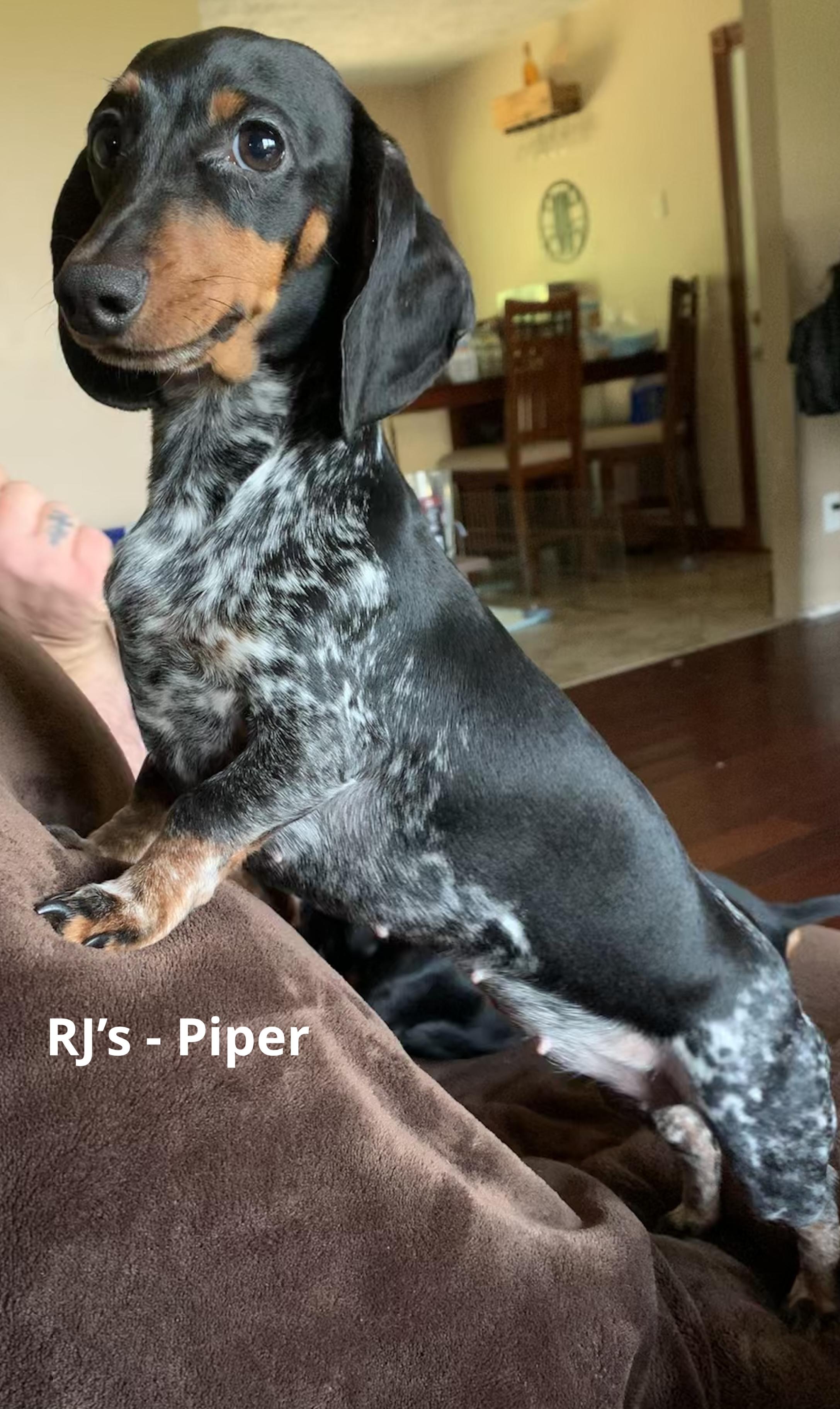 Our puppies include piebald, chocolate and tan, blue and tan, black and tan, and dapple. Colors will vary depending on the parent dogs.