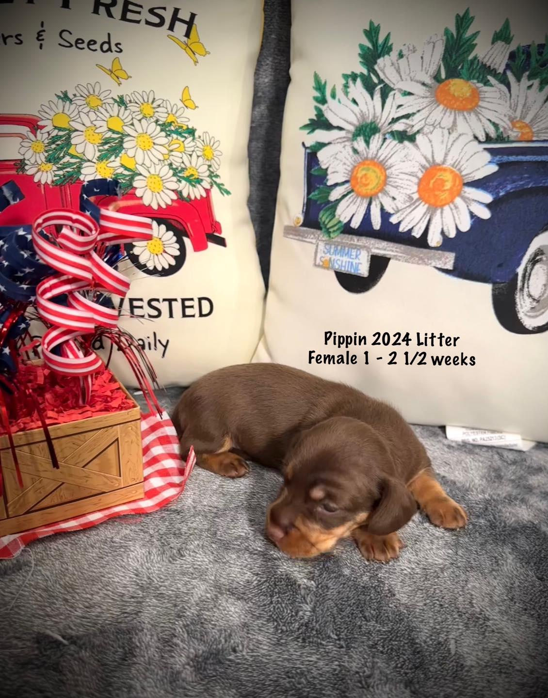 Pippin is a female Dachshund. Carefully selected as a great representative of her breed, Julie decided to make her part of their program. Julie has passed Good Dog’s screening process, which involved a review of their breeding practices, environment, and the mental and physical health of their dogs.