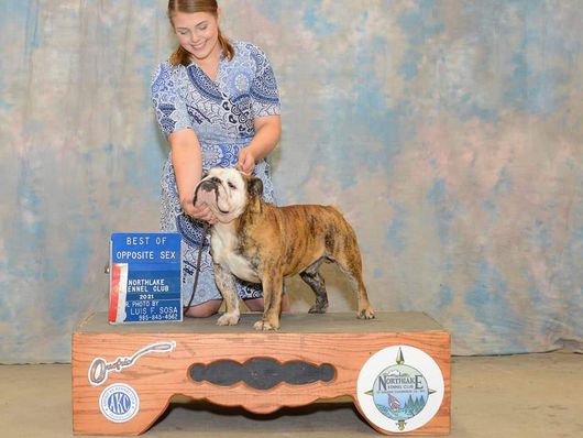 Baja is a female Bulldog. Carefully selected as a great representative of her breed, Kathy decided to make her part of their program. Kathy has passed Good Dog’s screening process, which involved a review of their breeding practices, environment, and the mental and physical health of their dogs.