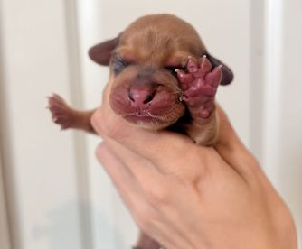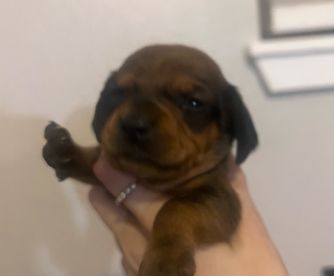 I must say that I am SUPER impressed with the quality of care from this breeder, Morgan. She really cares for the puppies and it shows. She kept in communication with me from beginning to end. Her responses were quick as well. She sent our baby home with everything she needed and then some. I definitely recommend her if anyone is looking for a dachshund. My daughter is over the moon in love with her baby!