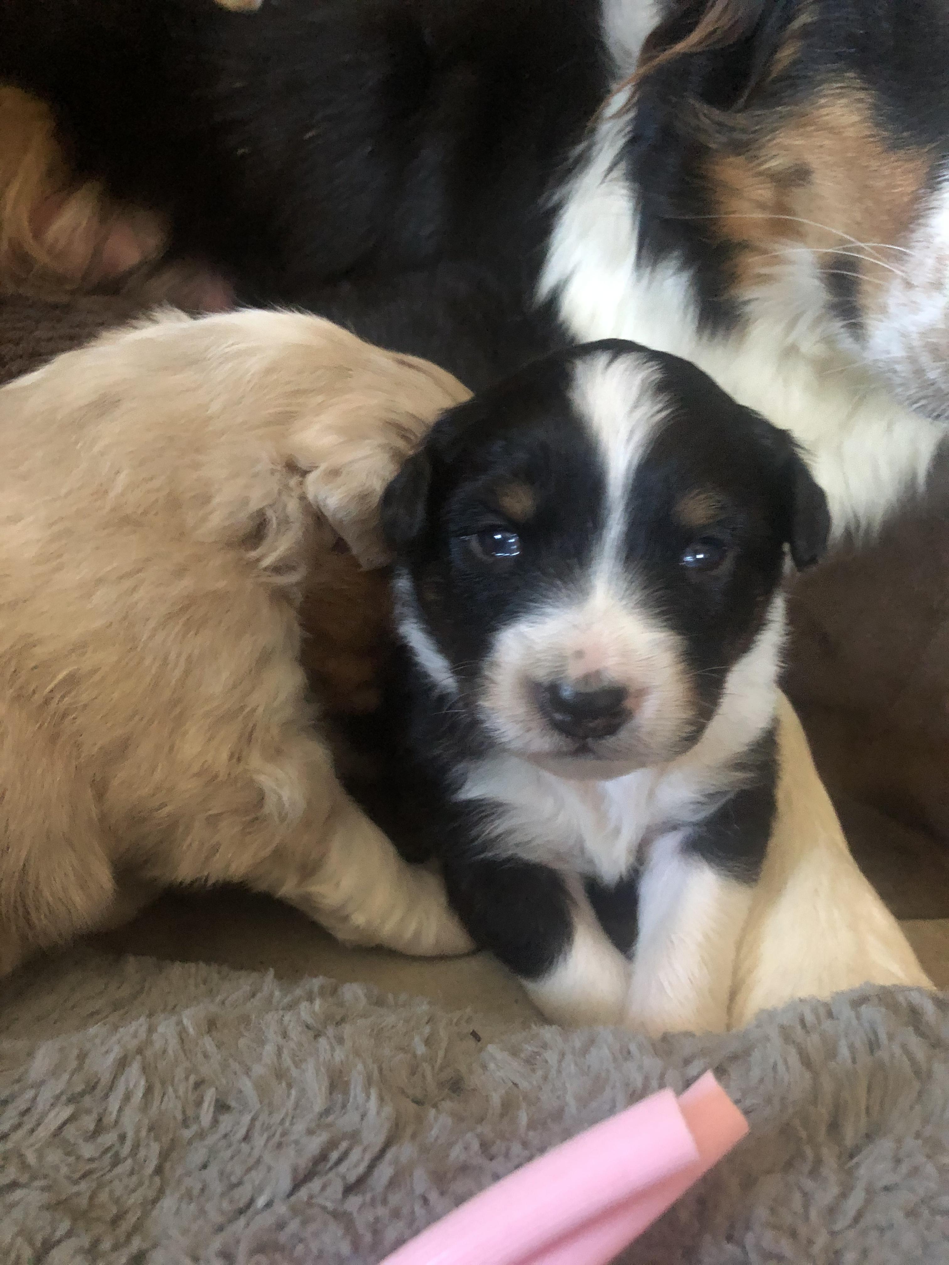 Our puppies include black, red merle, blue merle, and red. Colors will vary depending on the parent dogs.