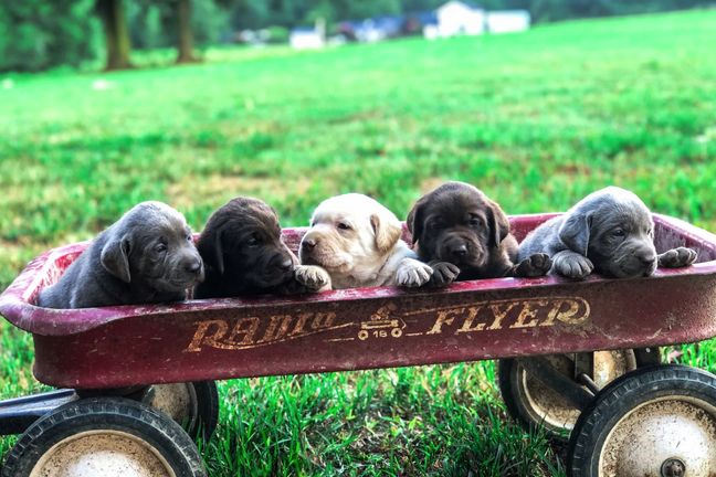 Our puppies include silver, charcoal, yellow, black, chocolate, and fox red. Colors will vary depending on the parent dogs.