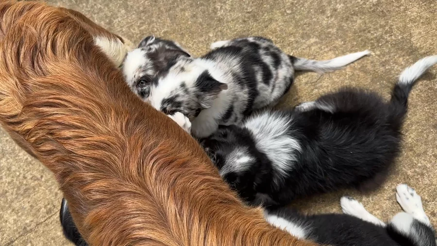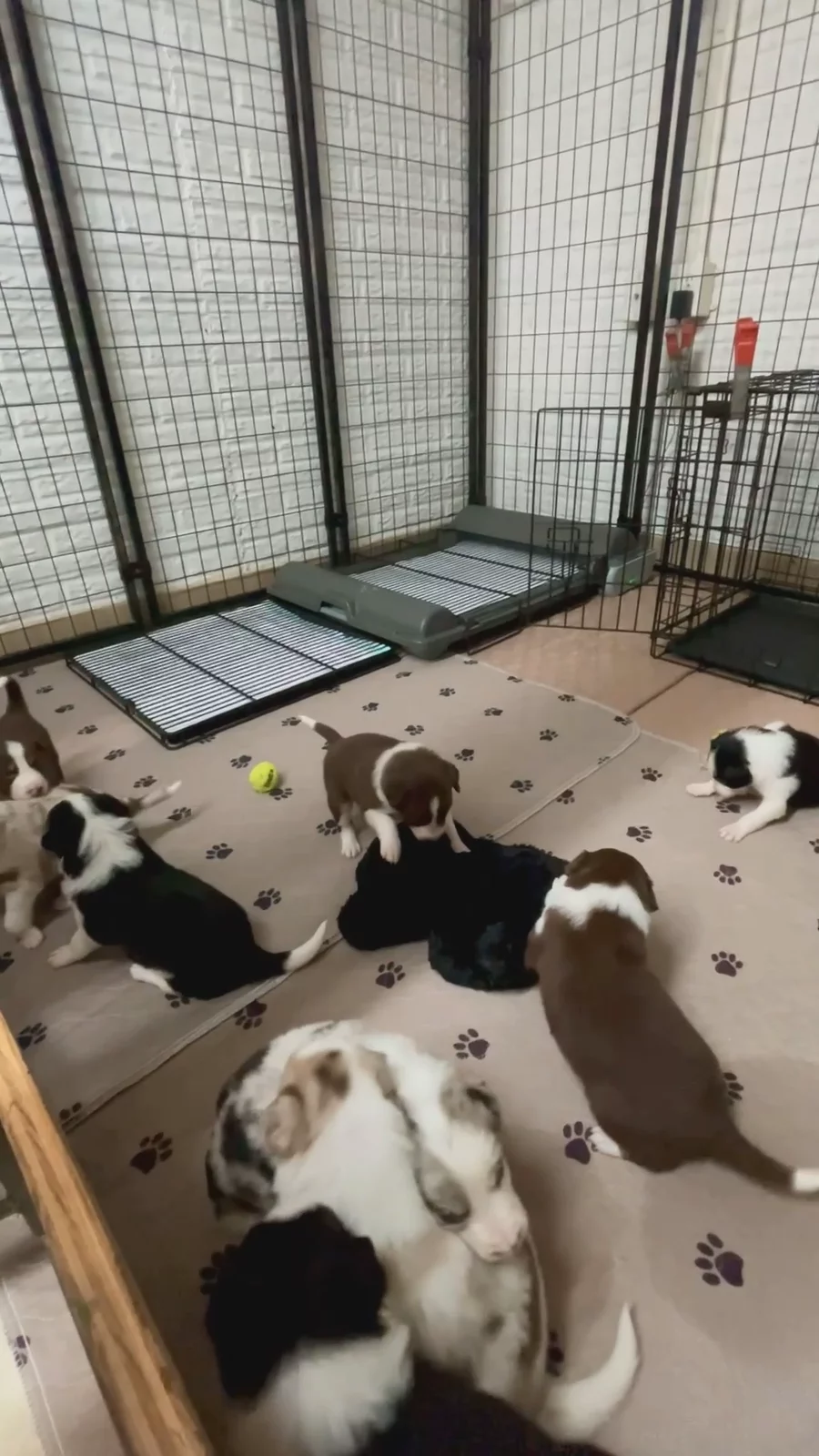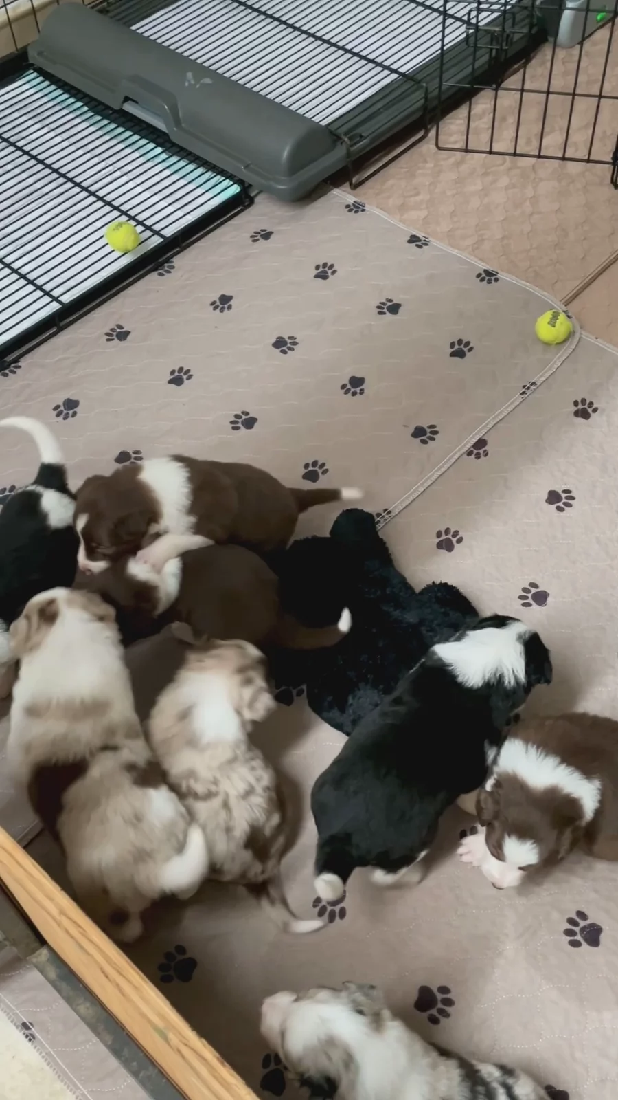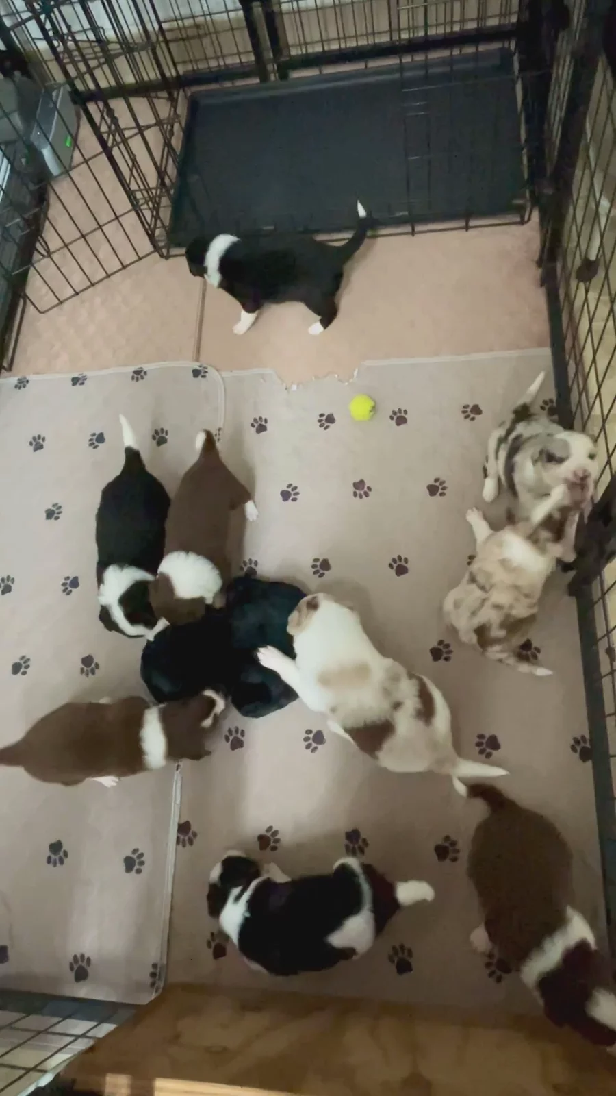 Our puppies include lilac merle, gold merle, blue merle, white and blue merle, and white ticked. Colors will vary depending on the parent dogs.