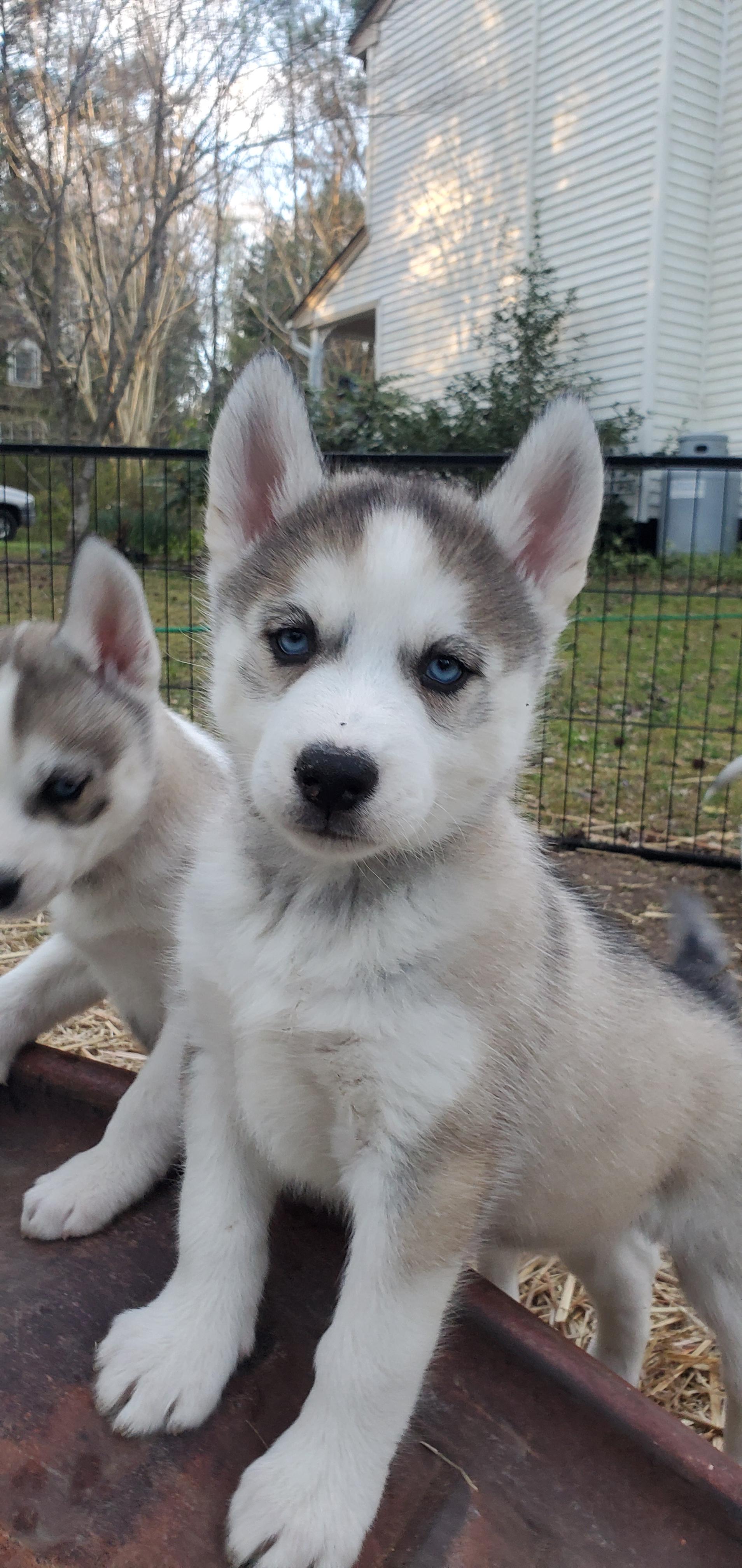 Siberian Husky puppies are white. Colors will vary depending on the parent dogs.