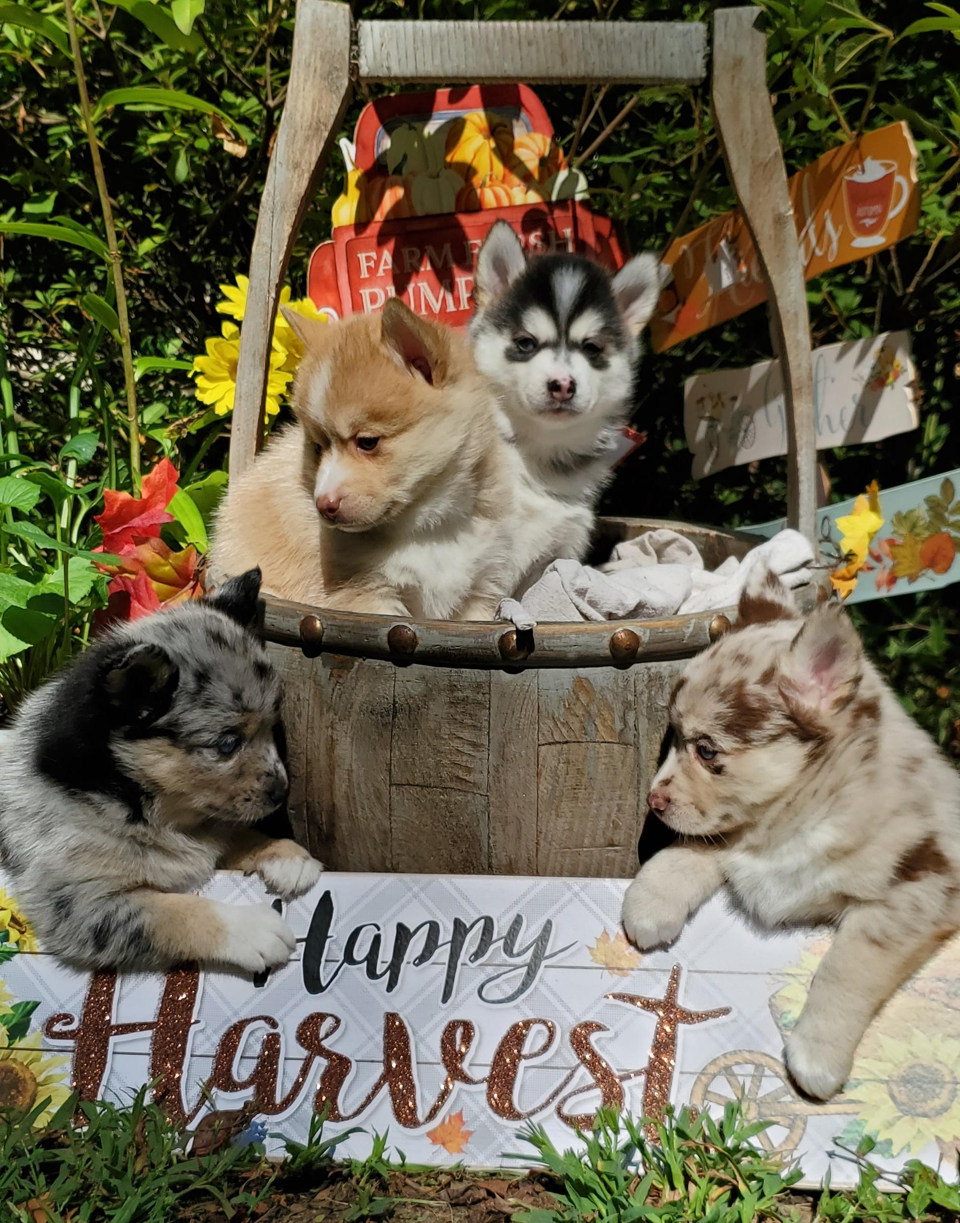 I'm Angela P., the breeder behind Roaring Springs Pomsky located in Gloucester, VA. Our dogs are bred for health and temperament with a focus on conformation, athleticism, and intelligence. We are dedicated to providing our families with wonderful, healthy family pets. Very happy, healthy spoiled dogs live here. All of our dogs are fully vetted and receive the best care possible.