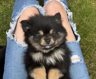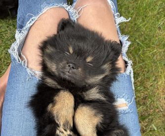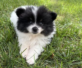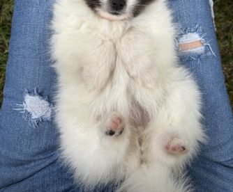 AKC registered female Merle Pom with clean health history and great personality. Raised in home with family and puppies.