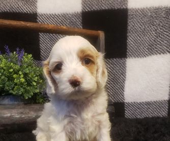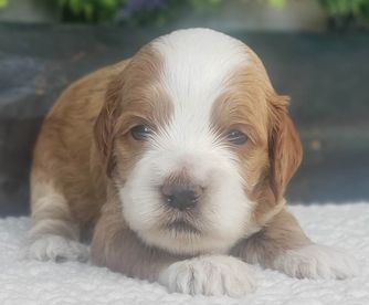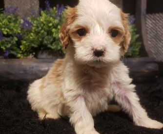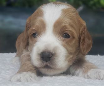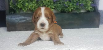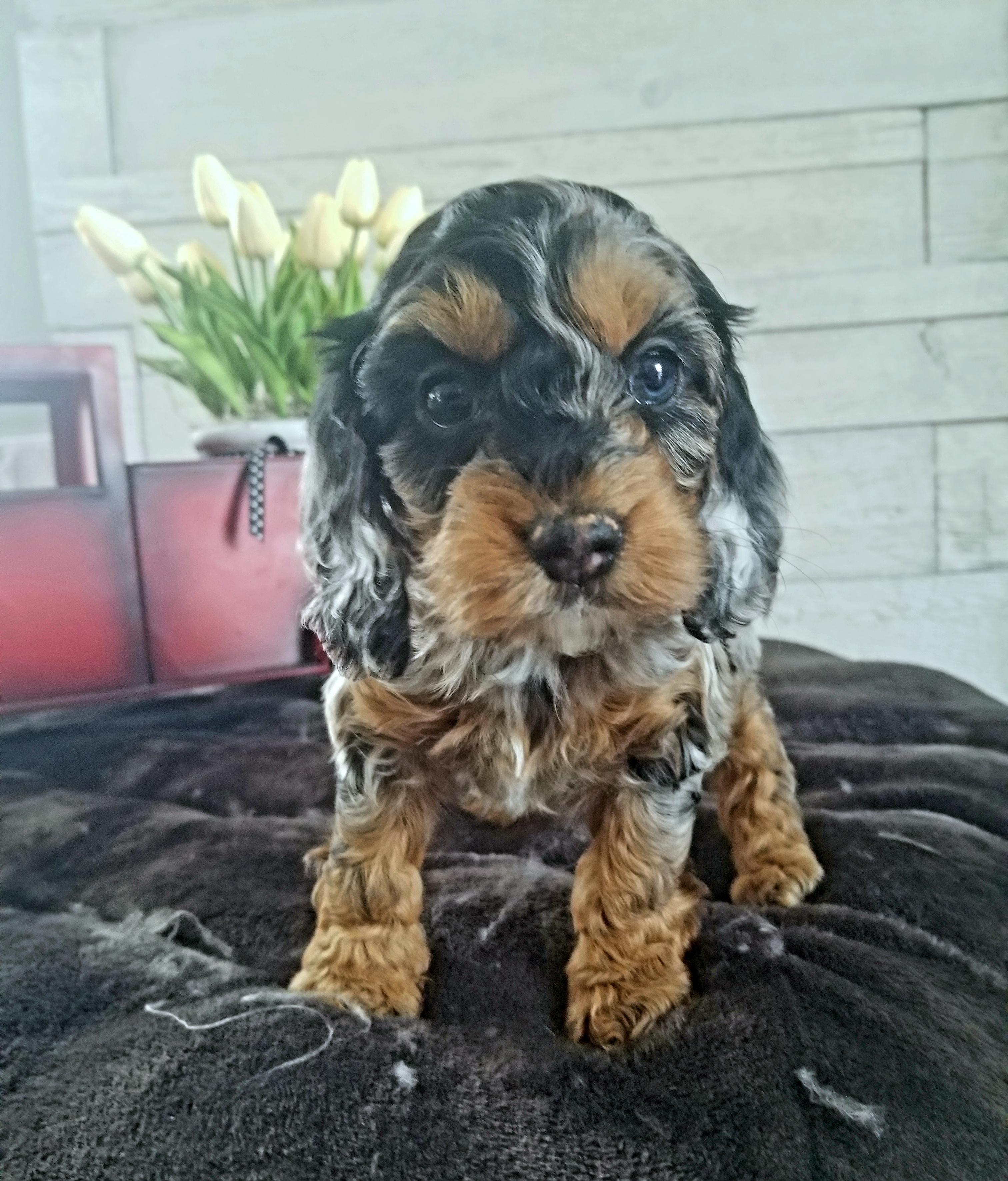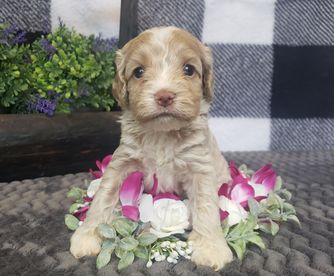 Our Goldendoodle puppies include cream, apricot, red, and parti. Cockapoo puppies include red, red and white, blue roan, brown, brown and white, brown and tan, black, black and tan, black and white, black white and tan, blue roan and tan, brown roan, brown roan and tan, brown white and tan, buff, buff and white, and cream. Colors will vary depending on the parent dogs.