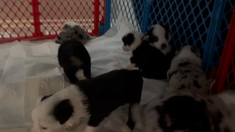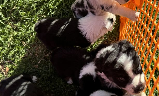 Our puppies include black, red merle, blue merle, red, and red tri-color. Colors will vary depending on the parent dogs.
