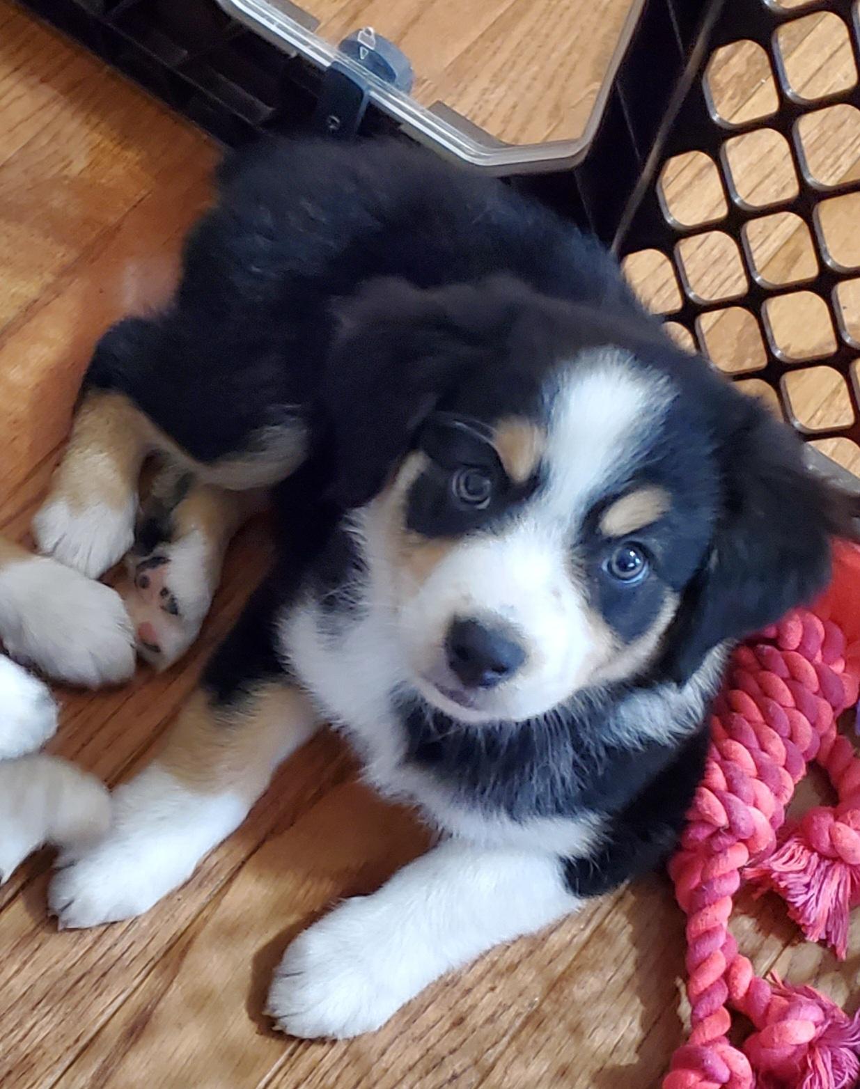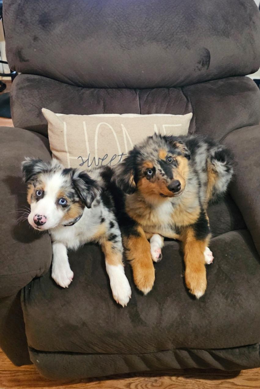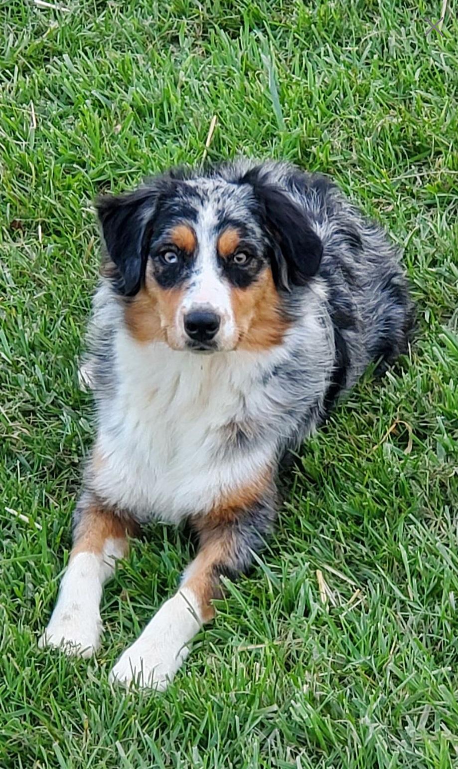 Miniature Australian Shepherd puppies include blue merle, black tri, red tri, and red merle. Colors will vary depending on the parent dogs.