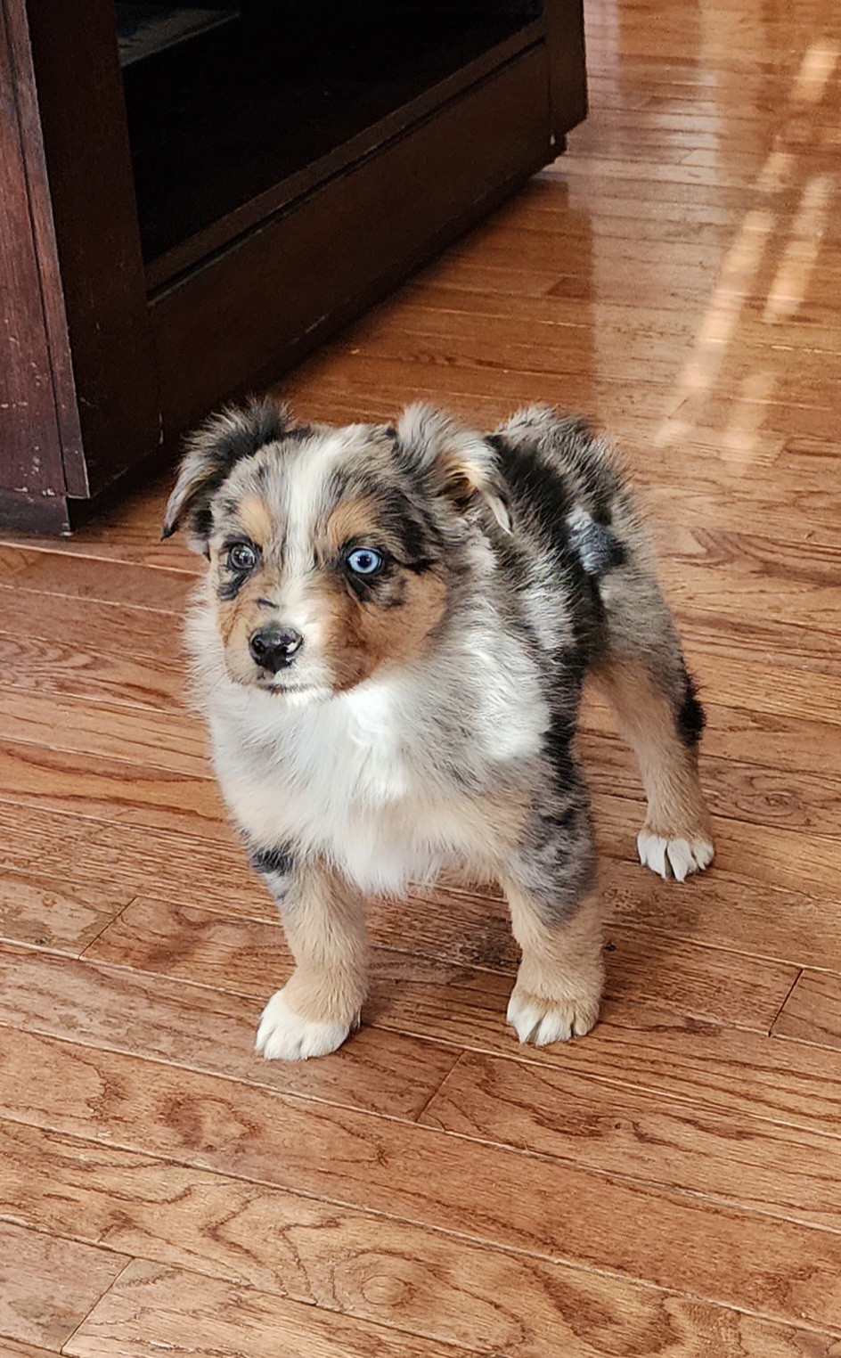Amy was responsive, answered all my questions and met us closer to our home in Nashville to bring our puppy home. Cosmo is a Miniature Australian Shepherd and he’s really smart, gentle and sweet (not to mention absolutely beautiful). He arrived home at 9 weeks accustomed to going potty outside, and housebreaking was a breeze. We love him!