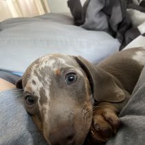 Rocklin is a female Dachshund. Carefully selected as a great representative of her breed, Robin decided to make her part of their program. Robin has passed Good Dog’s screening process, which involved a review of their breeding practices, environment, and the mental and physical health of their dogs.