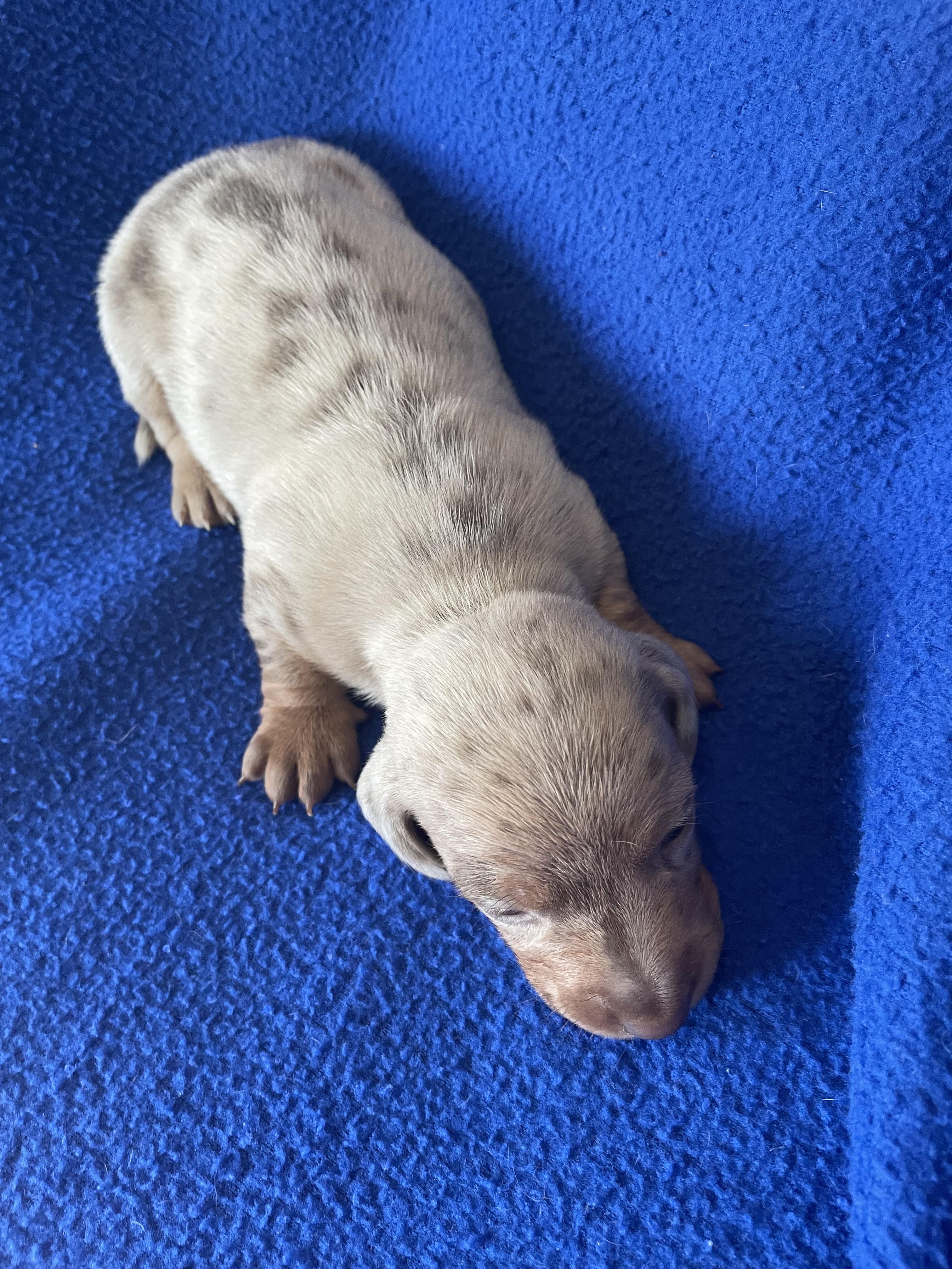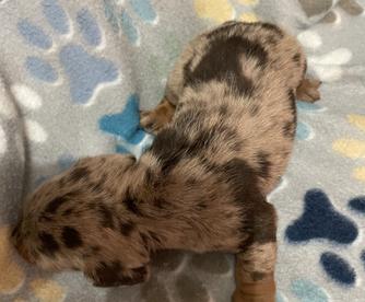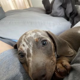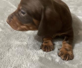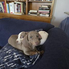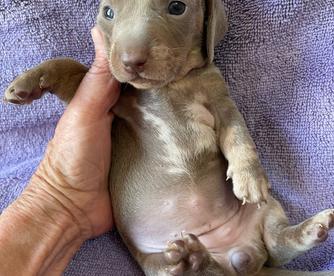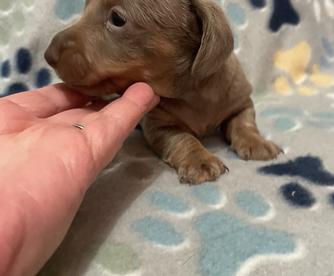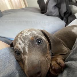 Willy is a feisty little wiener. It's been 20 years since I raised a puppy so im in a learning mode. Robin was very helpful during the exchange and im happy that I chose robin as a breeder, also she was only a 40 min drive away. I recommend Robin 100%.