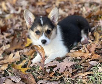 Our American Corgi puppies include red merle and white, brindle and white, and blue merle and white. Pembroke Welsh Corgi puppies include red, sable, and black and tan. Colors will vary depending on the parent dogs.