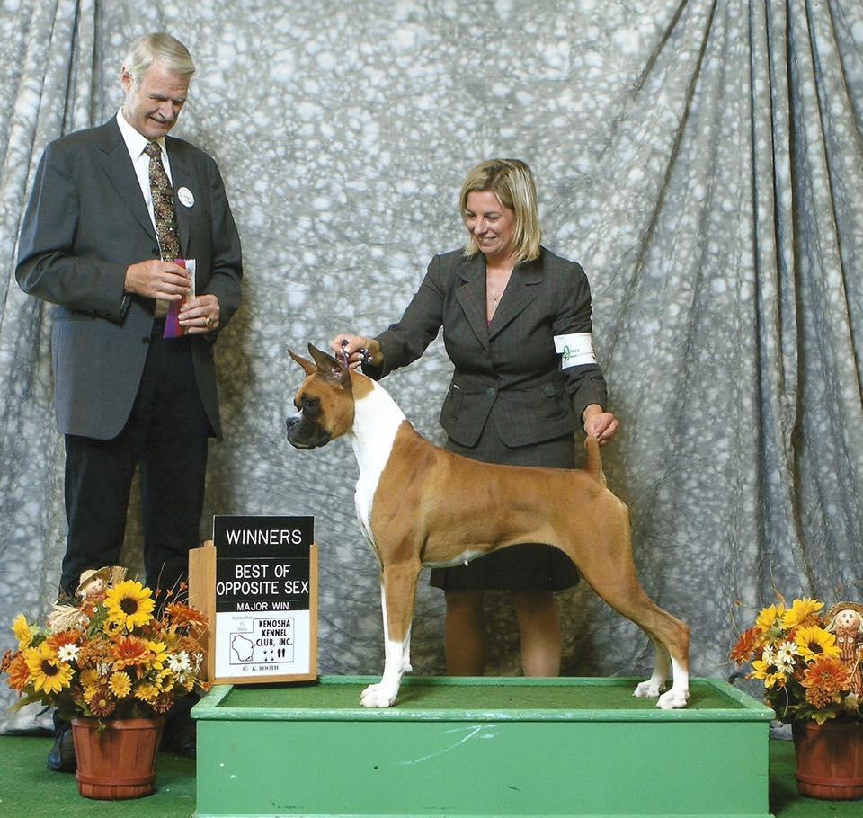 Brinkley is a female Boxer. Carefully selected as a great representative of her breed, Christine decided to make her part of their program. Christine has passed Good Dog’s screening process, which involved a review of their breeding practices, environment, and the mental and physical health of their dogs.
