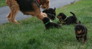 I'm Christine V., the breeder behind Roc Haven Airedales & Boxers located in Leland, IL. My goal is to raise Airedales and Boxers who will go forth into the world as great ambassadors of the breed exhibiting stability and balance in various environments with poise and confidence.