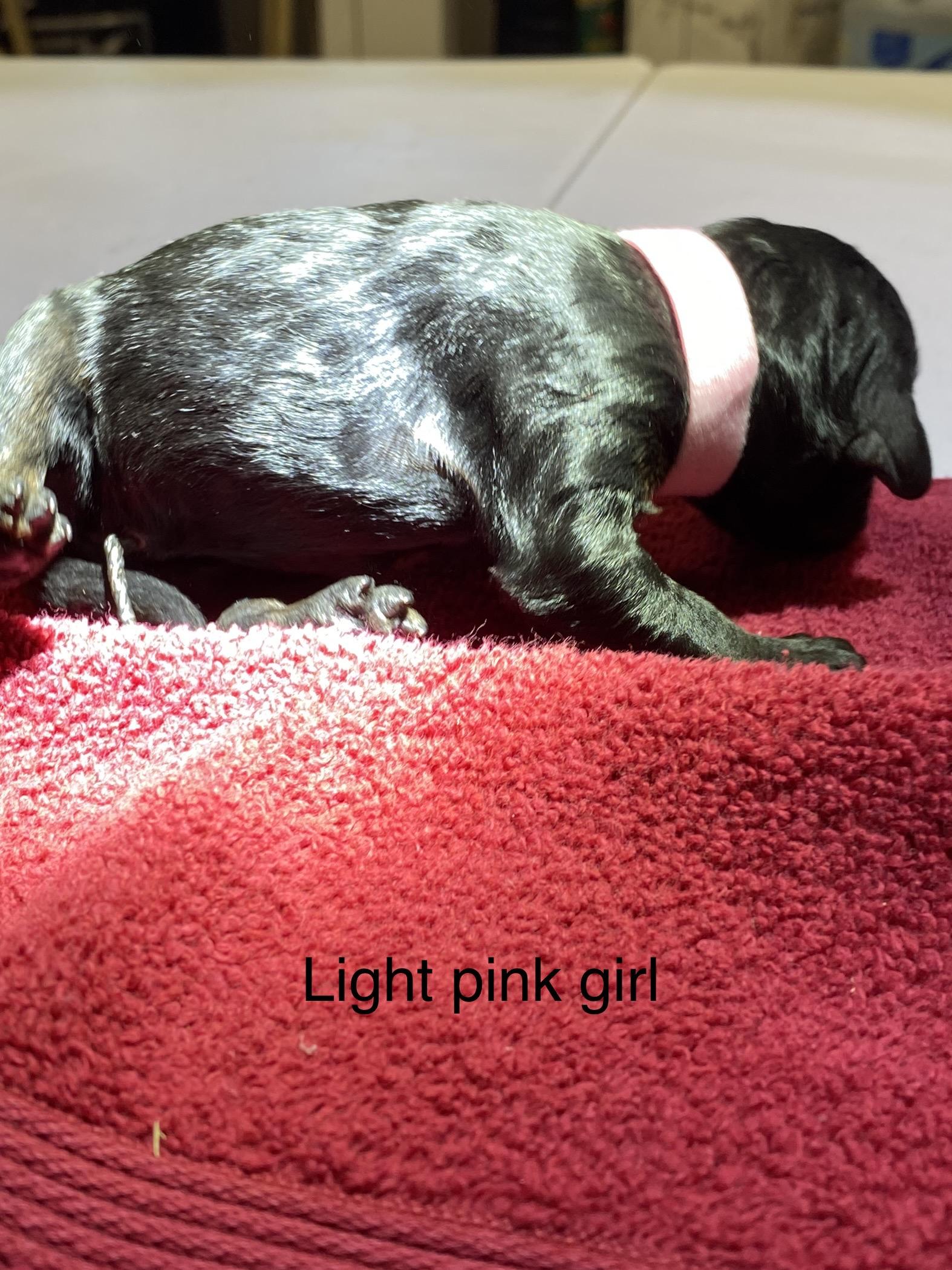 “This price includes vaccines from our vet as well as a health certificate. The tails will be docked and dew claws removed. You will receive a copy of the puppies daily records, a copy of the parents Embark Certificate and pictures. This price does not include breeding rights. Cassie and Max are both AKC and CKC registered. You will receive registration on your puppy from AKC. CKC will be available upon request. I do not take deposits until the puppies are born. My deposits are $500.00/puppy purchased. Pick of the litter will be in the order I receive deposits. I do have the right to first and second pick of the litter if I so choose. If you pay for full breeding rights. I will ask you to pay half of the cost in a non-refundable deposit. As soon as I receive an application from you, I will call to verify. Please be ready to answer my call. My number is 580-660-4100. Feel free to call me as well.”