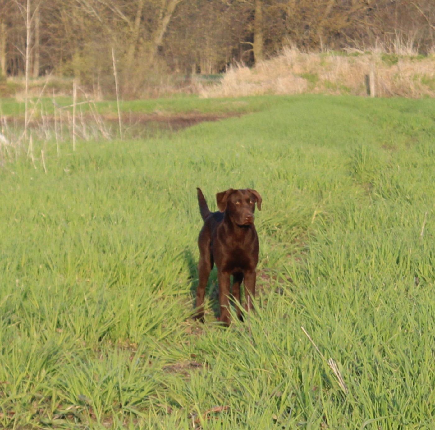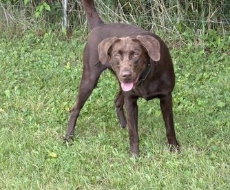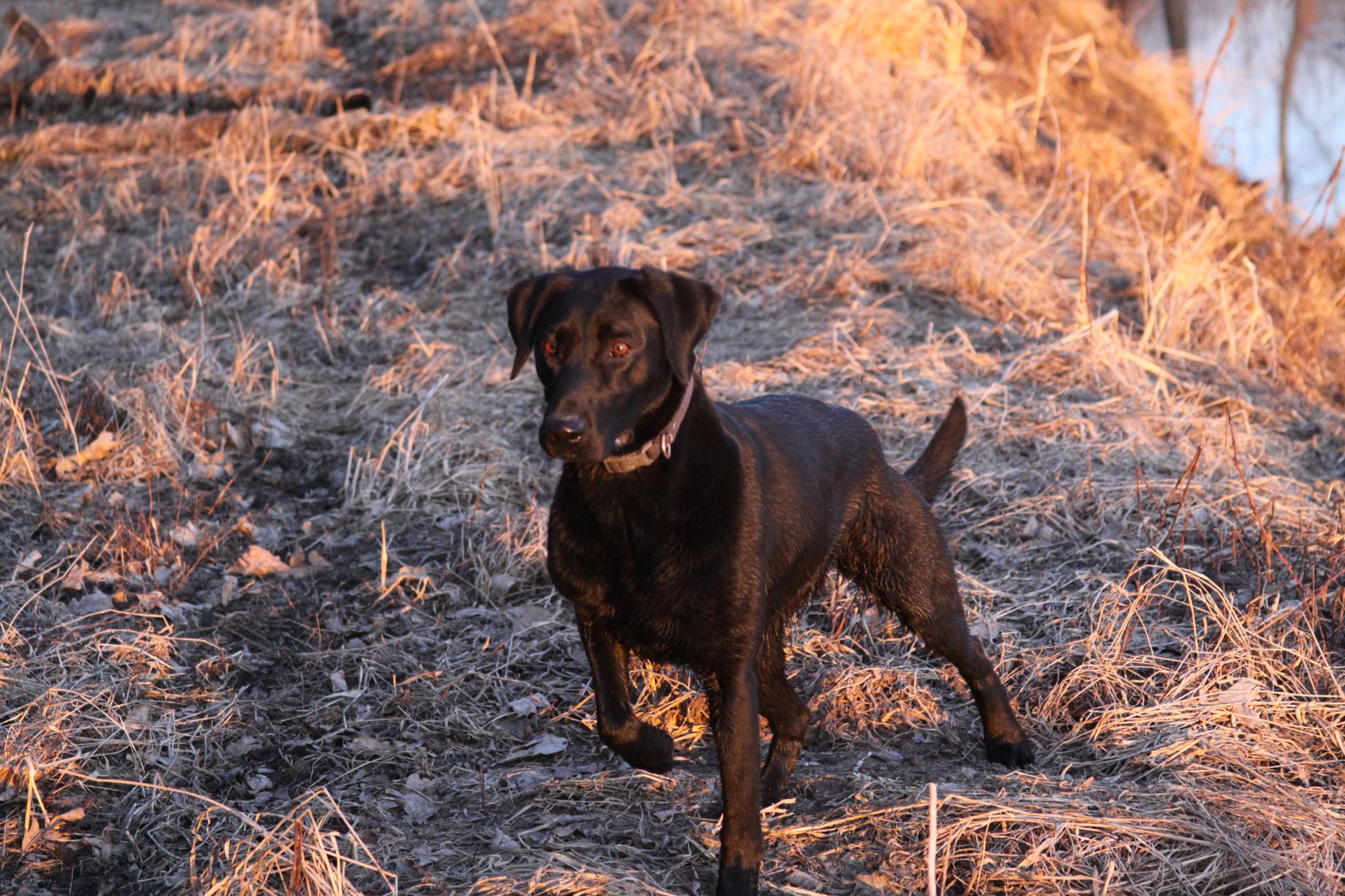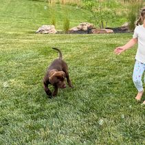 Snipe is a beautiful dark chocolate lab. She comes from Champion field trial bloodlines with APLA (American Pointing Lab Bloodlines). She has a ton of natural hunting ability. She loves to hunt upland as well as waterfowl. She has a great on/off switch.
