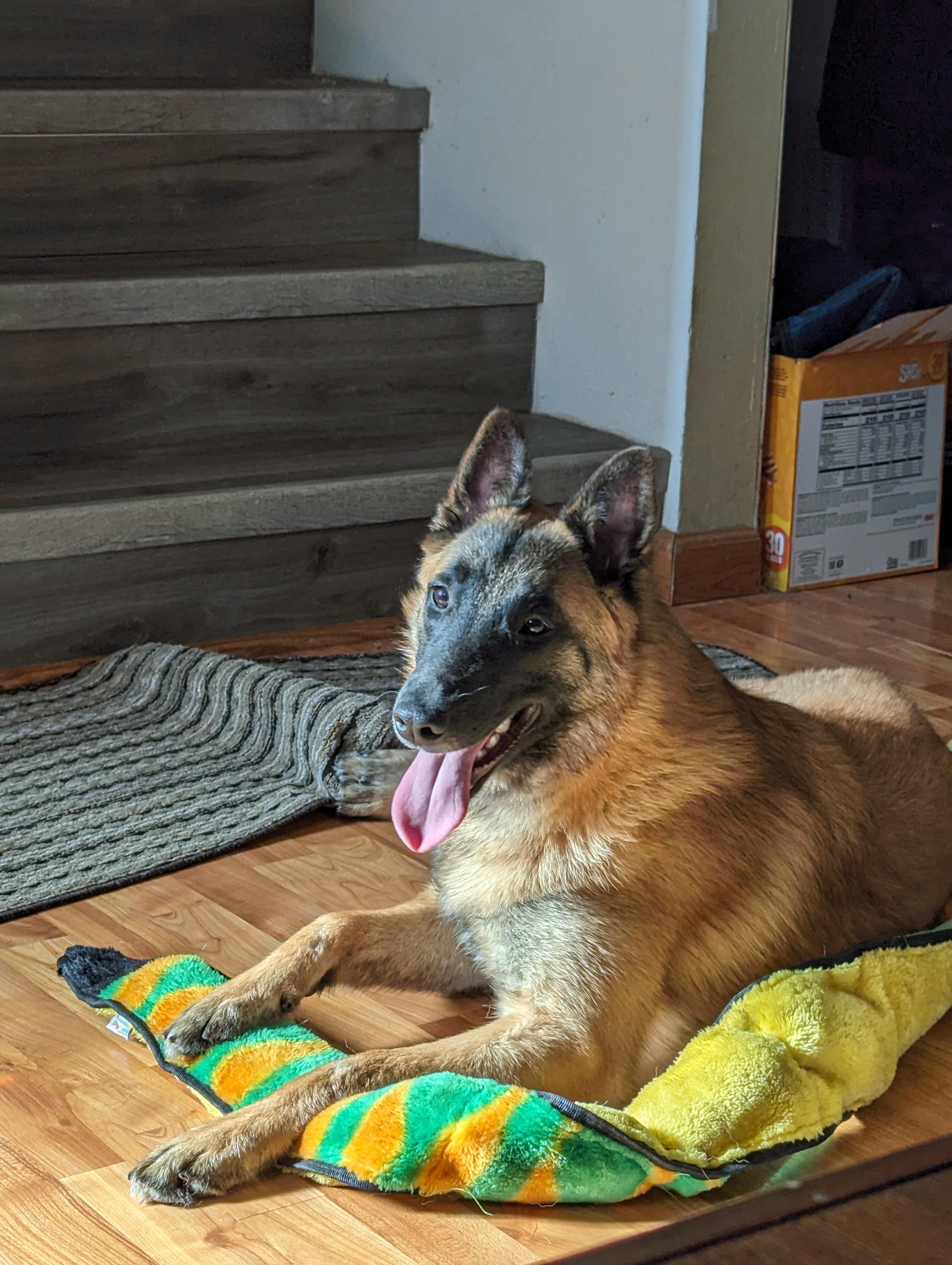 Flare is an AKC Grand Champion Bronze and thrives in the show ring. She loves to run Agility and play bite sports in the yard.