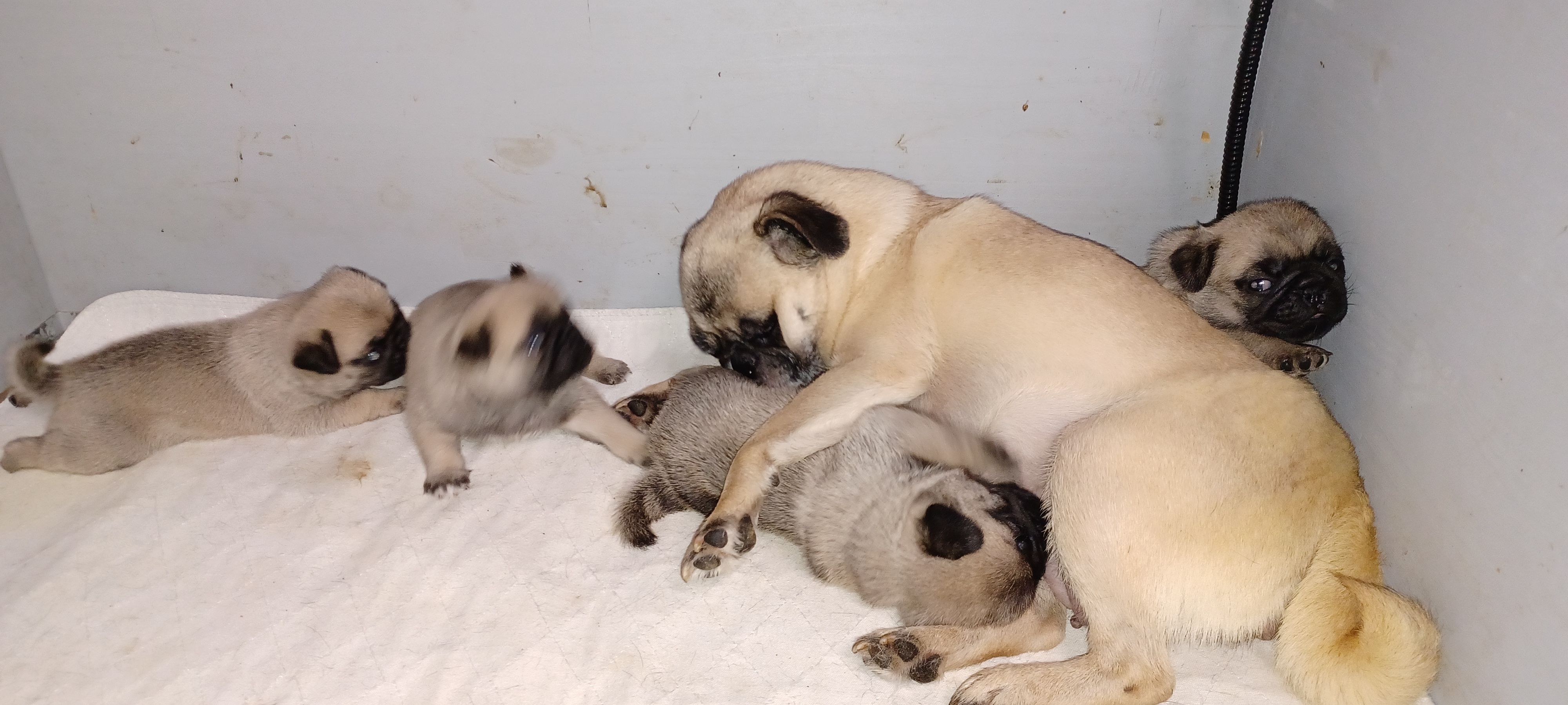 My program is special because a lot more goes into it than just breeding and making pups. Many years of experience, research and hard work gives me a unique edge when it comes to whelping fantastic litters so I can ensure every puppy gets off to a strong, confident, healthy, happy start in life. It doesn't take long conversing with me to figure out that I really know what I'm doing and I know my breed. It is an obsession! Many breeders in the tri state area consistently contact me for advice. I pour my life into caring for my pugs and it shows! I can provide many references! All paperwork, vaccination record, health check and all other paperwork will always be handed to you on pickup day.