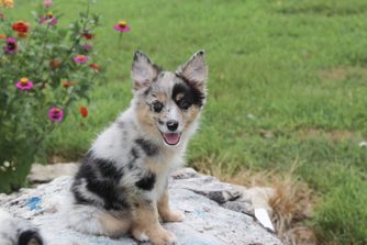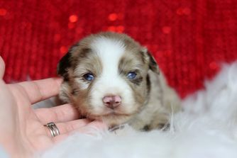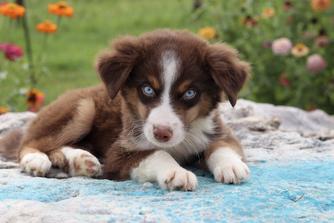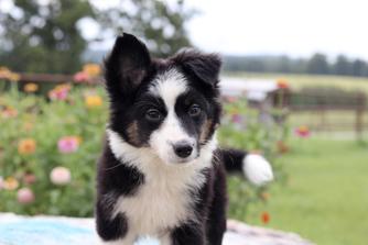 Our Australian Shepherd puppies include red merle, blue merle, black tri-color, and red tri-color. Miniature Australian Shepherd puppies include blue merle, black tri, red tri, and red merle. Toy Australian Shepherd puppies include black tri, blue merle, red merle, and red tri. Colors will vary depending on the parent dogs.
