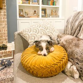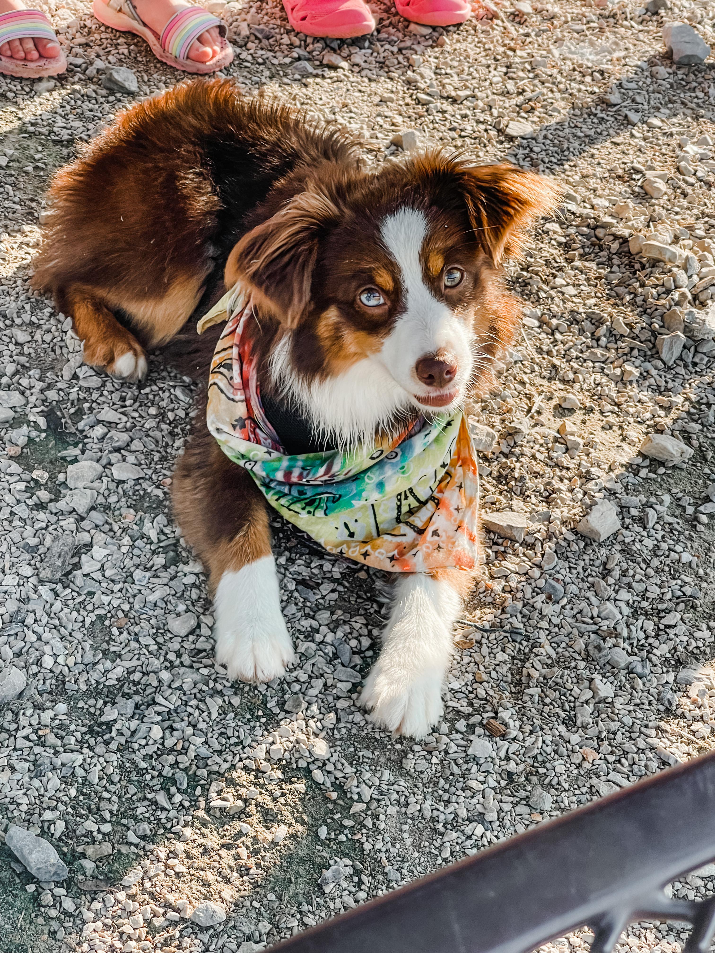 Sunny is a second generation Mini Aussie here on our farm and is an absolute dream. From running around on the farm to kayaking down the river, Sunny is our adventure dog through and through!