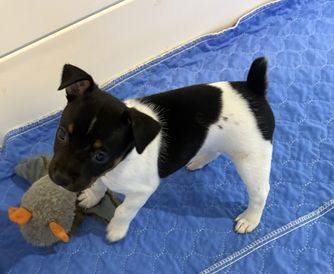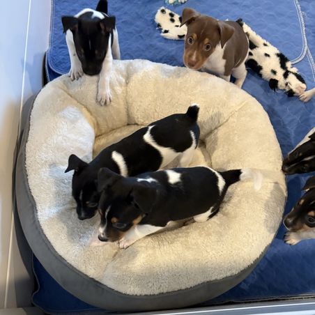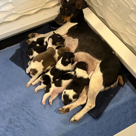 I recently had the pleasure of working with Jana Elizalde to find the perfect Rat Terrier puppy, and I couldn't be happier with the experience. Jana is an exceptional breeder who truly cares about the well-being and proper placement of her puppies. From the start, Jana demonstrated excellent communication skills, keeping me informed and involved in every step of the process. She performed all the essential health testing on the puppy's parents and provided comprehensive documentation, ensuring that the puppies were healthy and well-bred. I was looking for a puppy with a temperament suitable for therapy work with children in a hospital setting. Jana took the time to observe her litter and thoughtfully considered my personal preferences. She worked closely with me to select a puppy that not only matched the temperament I needed but also aligned perfectly with my lifestyle. Her dedication to finding the right fit was evident, and I am so grateful for her guidance. Jana's approach to early puppy development is remarkable. She spends significant time with her puppies, teaching them to use a litterbox, starting crate training, and exposing them to various experiences like car rides, vet visits, and different surfaces, textures, and sounds. This comprehensive preparation made a noticeable difference in how well-adjusted and confident my puppy is. Living in Florida, I was concerned about the logistics of getting my new puppy. Jana's husband stepped in as a "flight nanny" and personally delivered my puppy to Orlando International Airport. The puppy arrived happy, healthy, and remarkably stress-free, thanks to the thoughtful care provided by Jana and her husband. My new little boy is incredibly smart, confident, and loving. He adapts quickly, learns fast, and brings so much joy to our lives. Jana's dedication to ethical breeding and early puppy development is evident in every aspect of her program. We are absolutely smitten with our new family member and can't thank Jana enough for her professionalism, care, and commitment to matching us with the perfect puppy. I am thrilled to have found Jana Elizalde and look forward to continuing our partnership throughout my puppy's life. If you're looking for a Rat Terrier breeder who goes above and beyond, I highly recommend Jana. Her expertise, care, and dedication are truly unmatched.