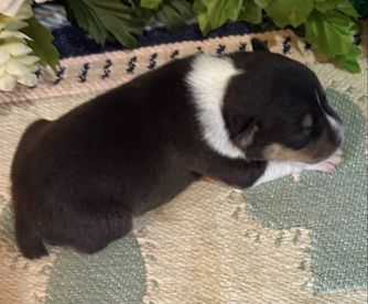 Our puppies include blue white and tan, red white and sable, and black tan and white. Colors will vary depending on the parent dogs.