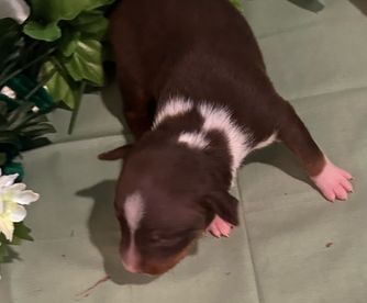 We had a wonderful experience with Jana! Communication was always prompt and friendly, and she kept me updated with pictures, videos, and detailed notes from birth until pickup. The puppies were clearly raised with great care—very well socialized and confident, and early experience with create made our life much easier than it could be! Chevy (now renamed Sugar ) came home healthy and happy, adjusted well and fast. I really appreciate the breeder’s transparency, knowledge, and dedication to matching the right puppy for me as well, and her husband traveled all the way to Iowa to deliver the little puppy. Highly recommended for anyone looking for a healthy, well-adjusted companion!