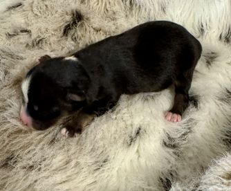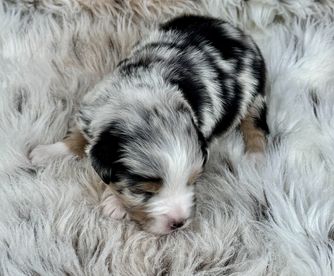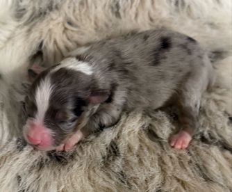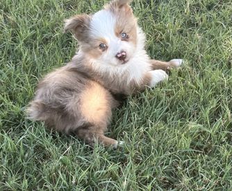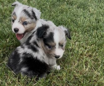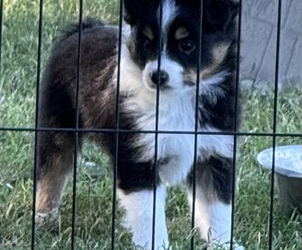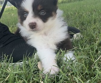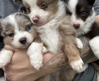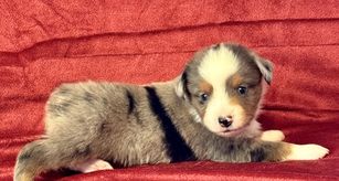 Our puppies include black tri, blue merle, red merle, and red tri. Colors will vary depending on the parent dogs.