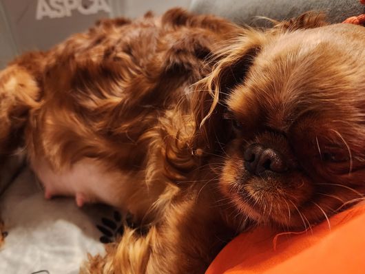 Miisy is a female Pomeranian. Carefully selected as a great representative of her breed, Dawn decided to make her part of their program. Dawn has passed Good Dog’s screening process, which involved a review of their breeding practices, environment, and the mental and physical health of their dogs.