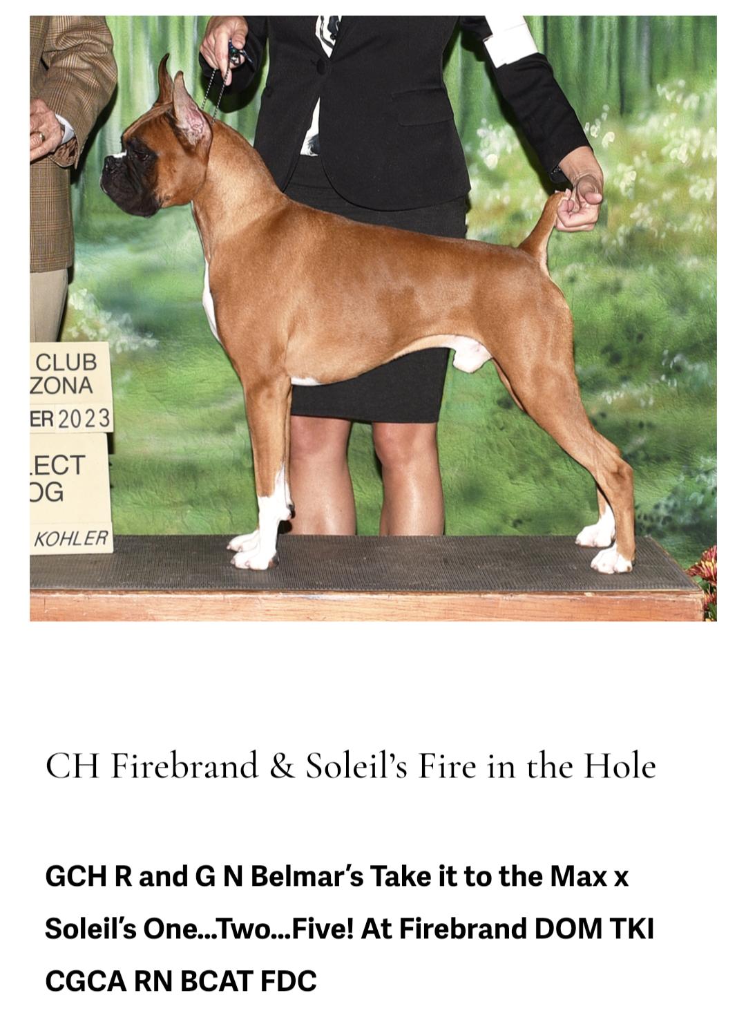 Canon is a male Boxer. Carefully selected as a great representative of his breed, Sarah decided to make him part of their program. Sarah has passed Good Dog’s screening process, which involved a review of their breeding practices, environment, and the mental and physical health of their dogs.