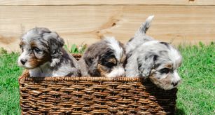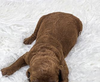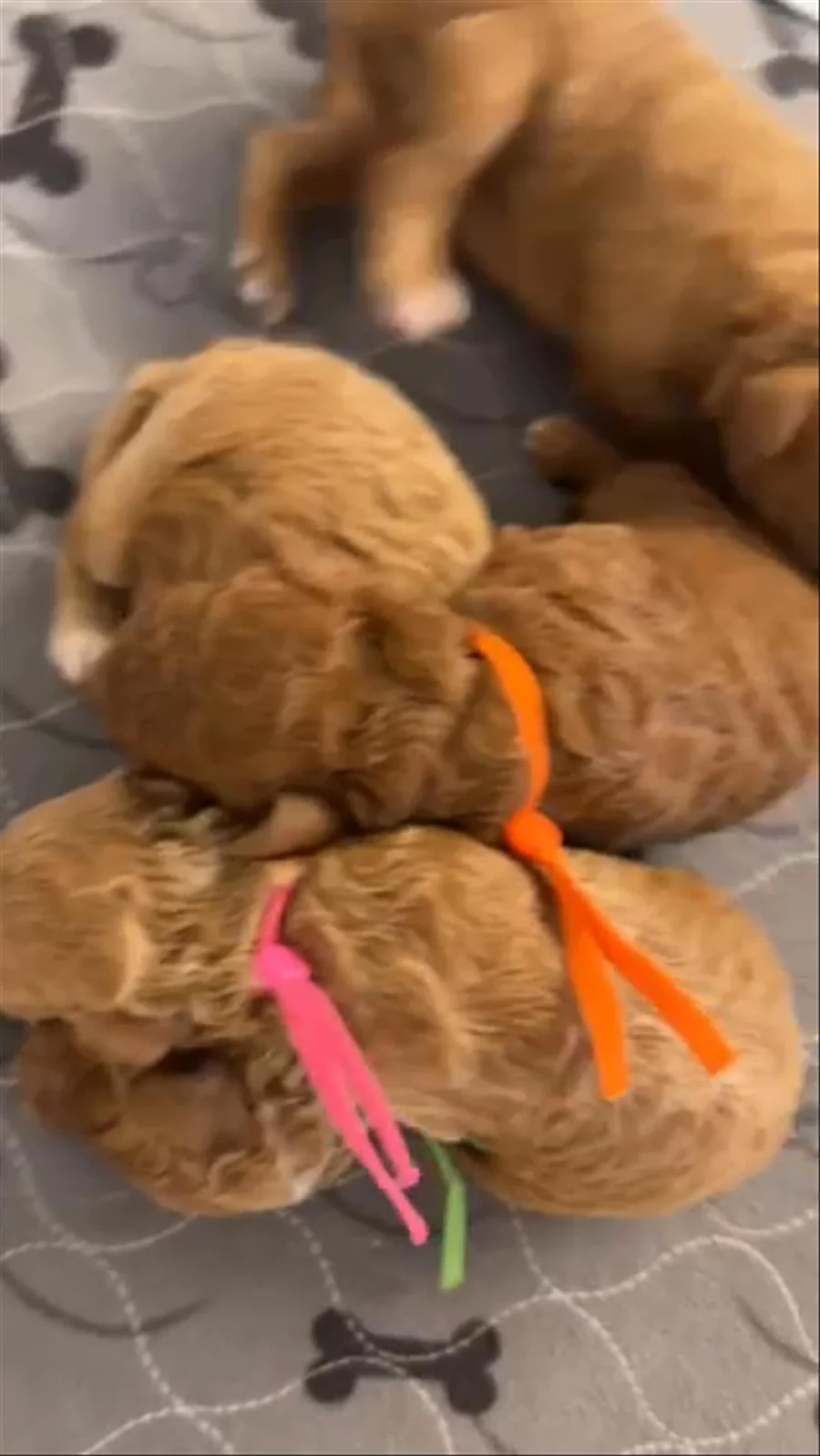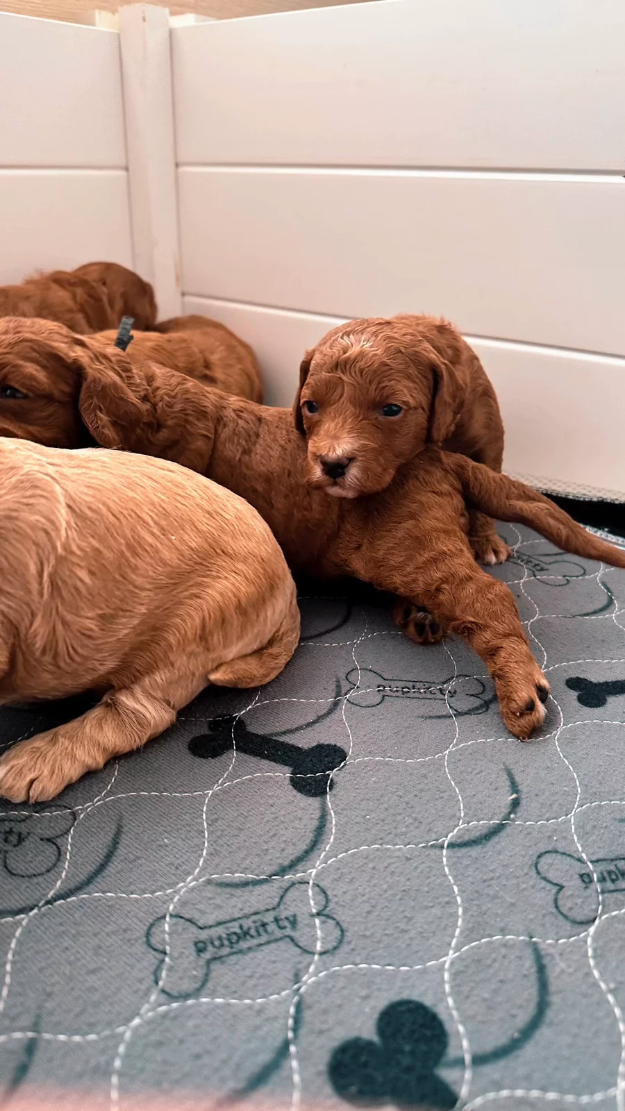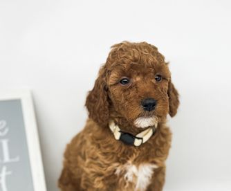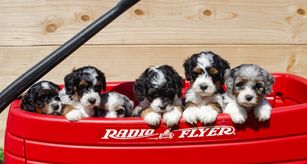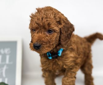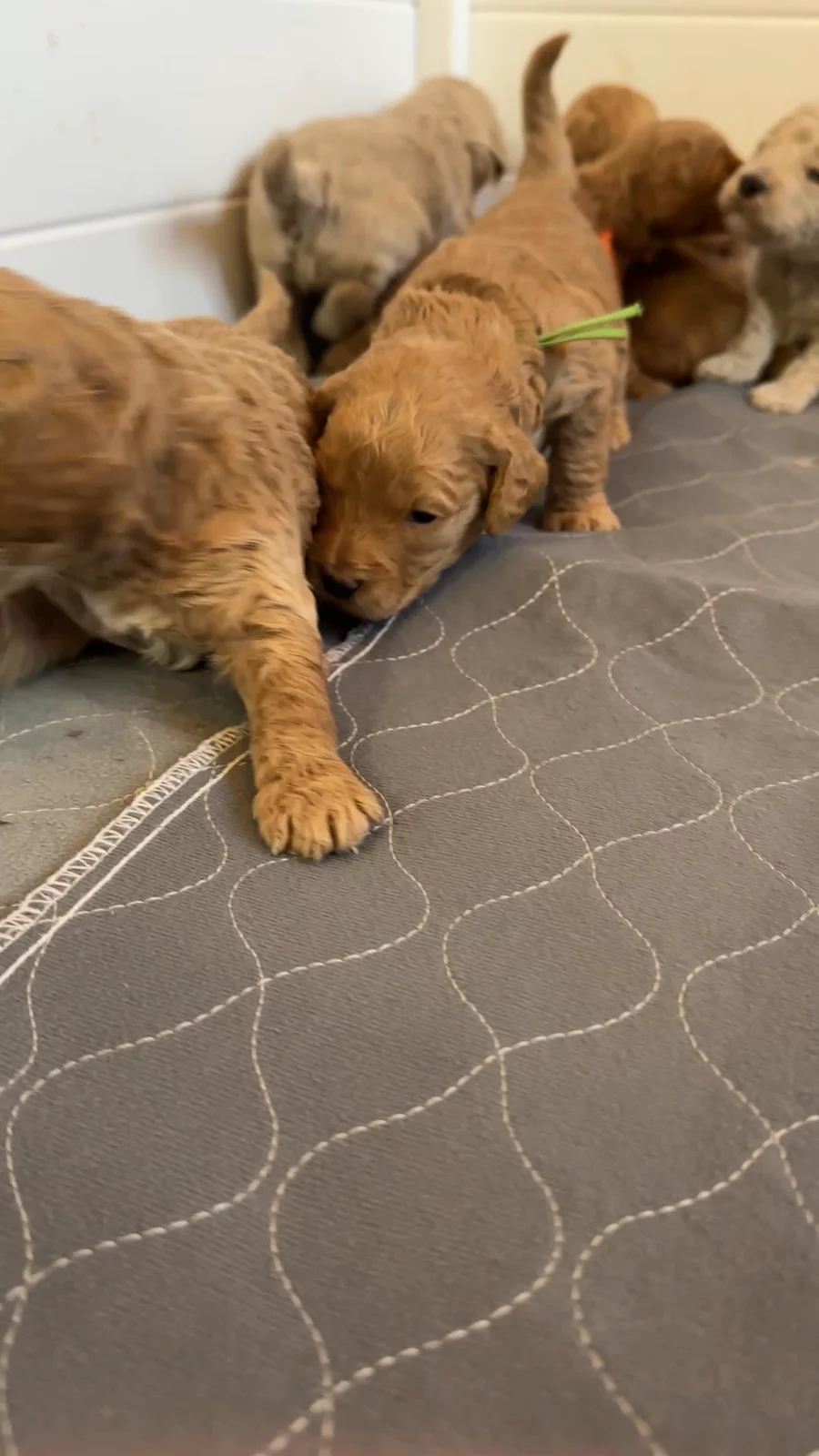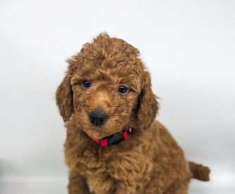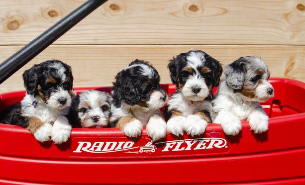 Our Goldendoodle puppies include cream, apricot, and red. Bernedoodle puppies include tri-color, phantom, and merle. Colors will vary depending on the parent dogs.