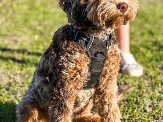 Our first Golden Retriever, Payton, was the sweetest and most loving dog to have ever lived. However, with Payton, I would vacuum our house everyday, or twice a day, due to all the hair. After he passed, we heard about Goldendoodles, which would give the sweet personality of Payton that we loved so much, without the constant layer of hair everywhere. We were sold!