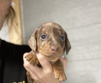 Our Companion Cross puppies are small size. Dachshund puppies are miniature size. Sizes will vary depending on the parent dogs.