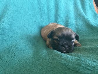 “Male puppy, up-to-date on shots and warmer practicing puppy pad training now doing great.”