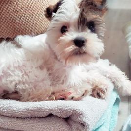 Honey is a female Miniature Schnauzer. Carefully selected as a great representative of her breed, Chelsi decided to make her part of their program. Chelsi has passed Good Dog’s screening process, which involved a review of their breeding practices, environment, and the mental and physical health of their dogs.